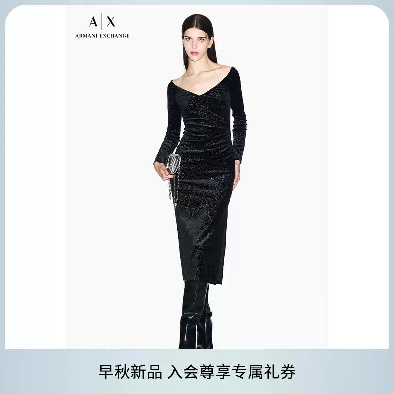 Женское платье с длинными рукавами AE FW25 ARMANI EXCHANGE, черный 28 593₽