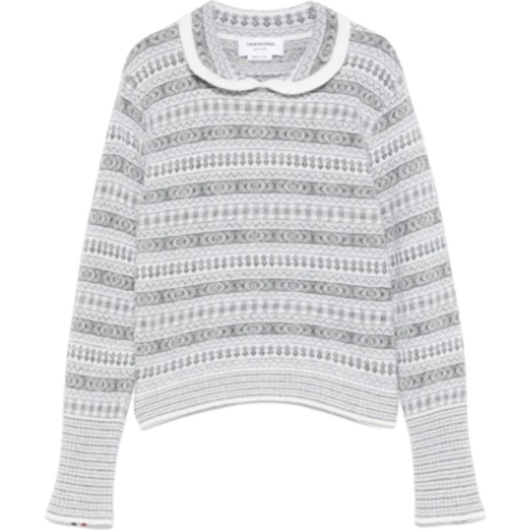 Свитер с воротником питер пэн в технике фэр айл THOM BROWNE, белый 94 987₽