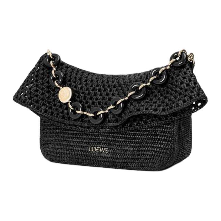 LOEWE Сумка женская Raffia Patchwork Calfskin средний размер Black
