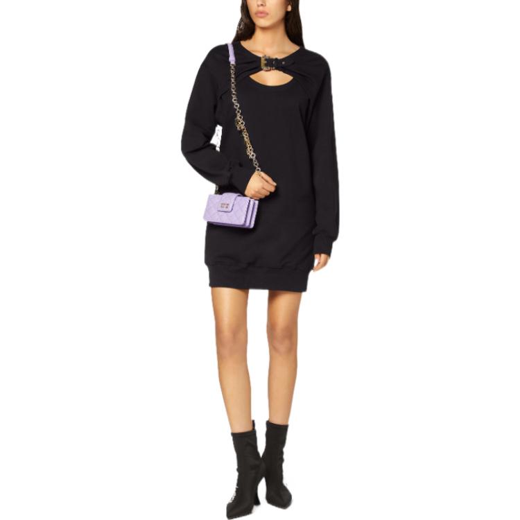 Платье с длинными рукавами и пряжкой VERSACE JEANS COUTURE, черный
