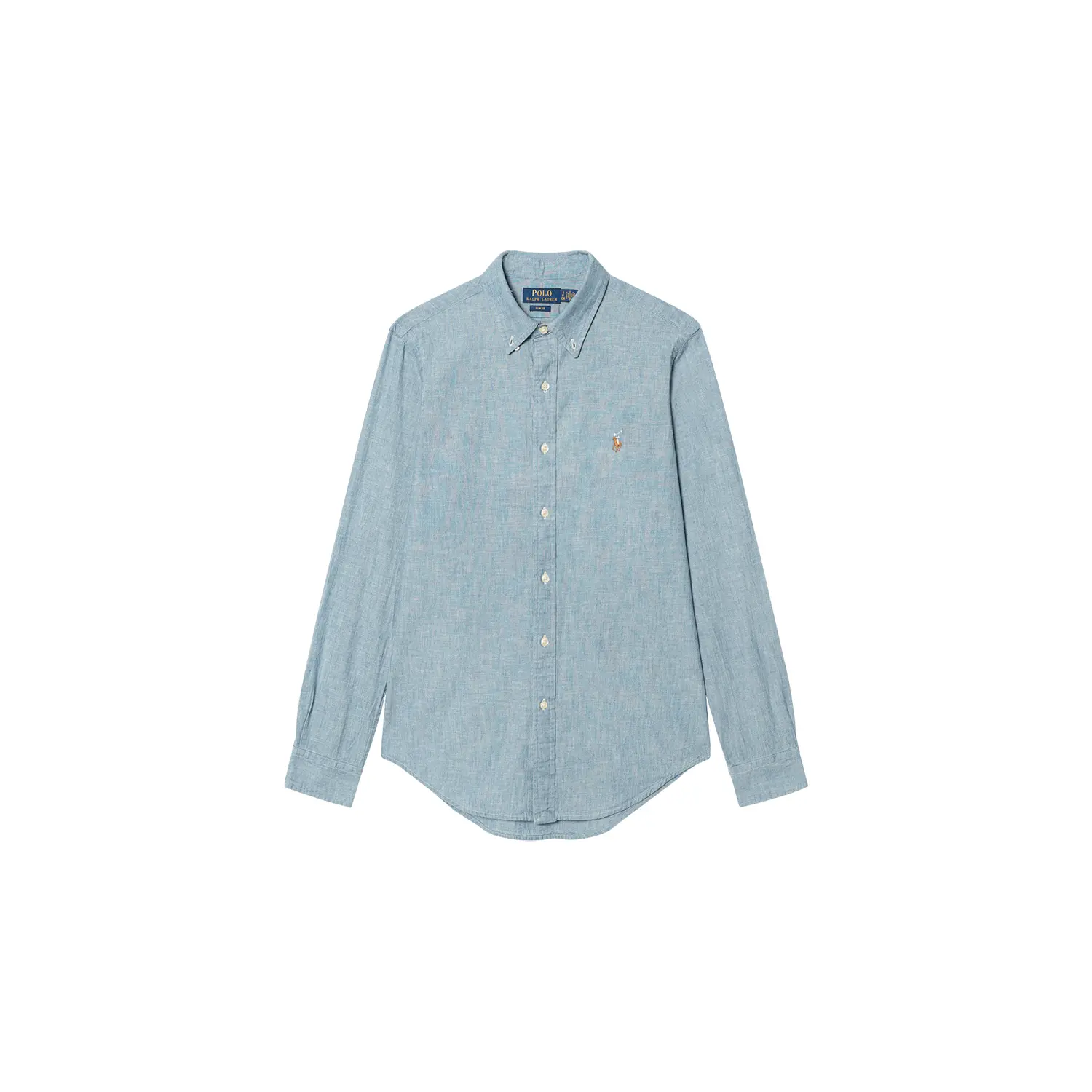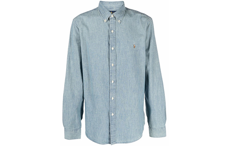 Рубашка с вышитым пони и фигурным подолом Polo Ralph Lauren, синий