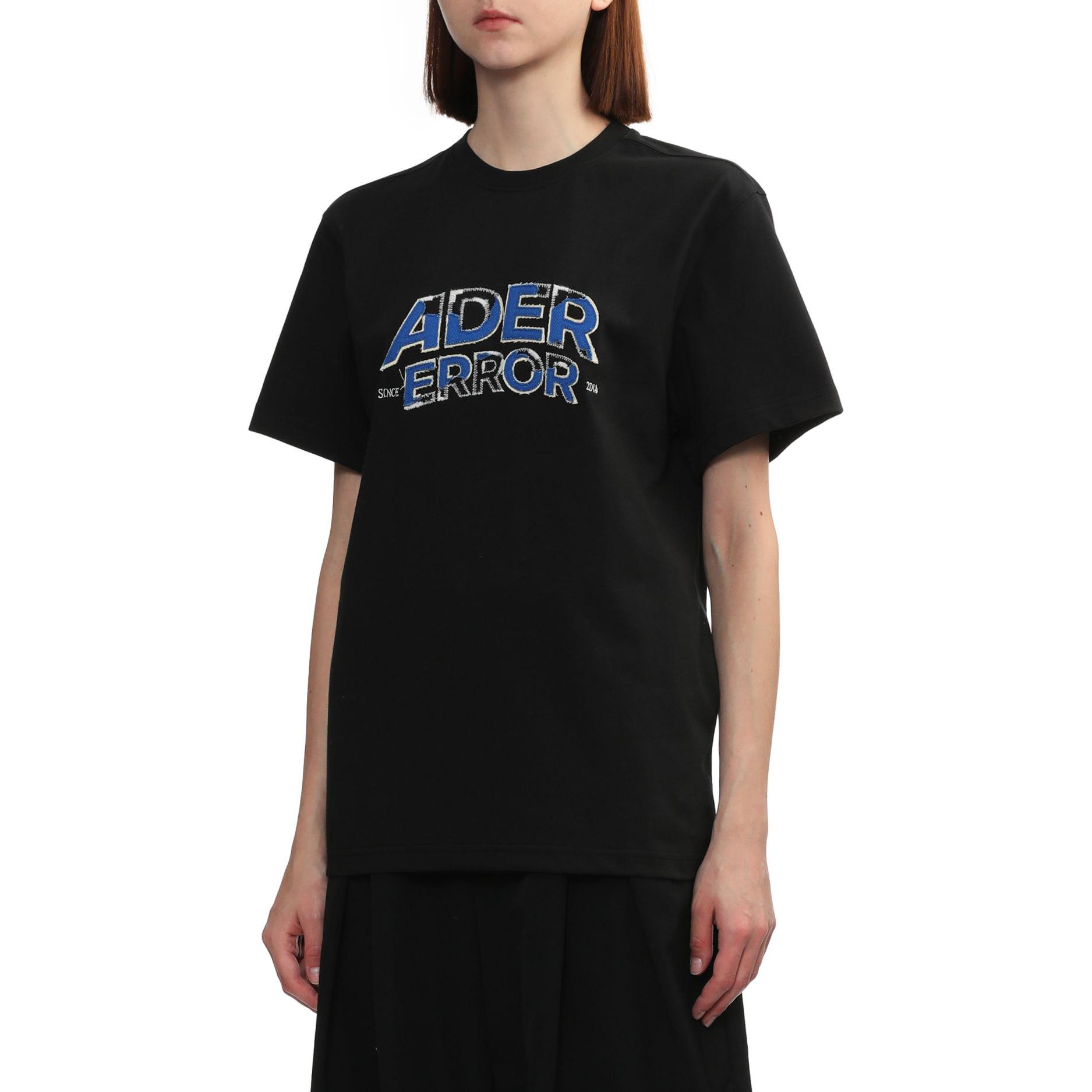 Футболка с вышитым логотипом и спущенным плечом ADER ERROR, черный