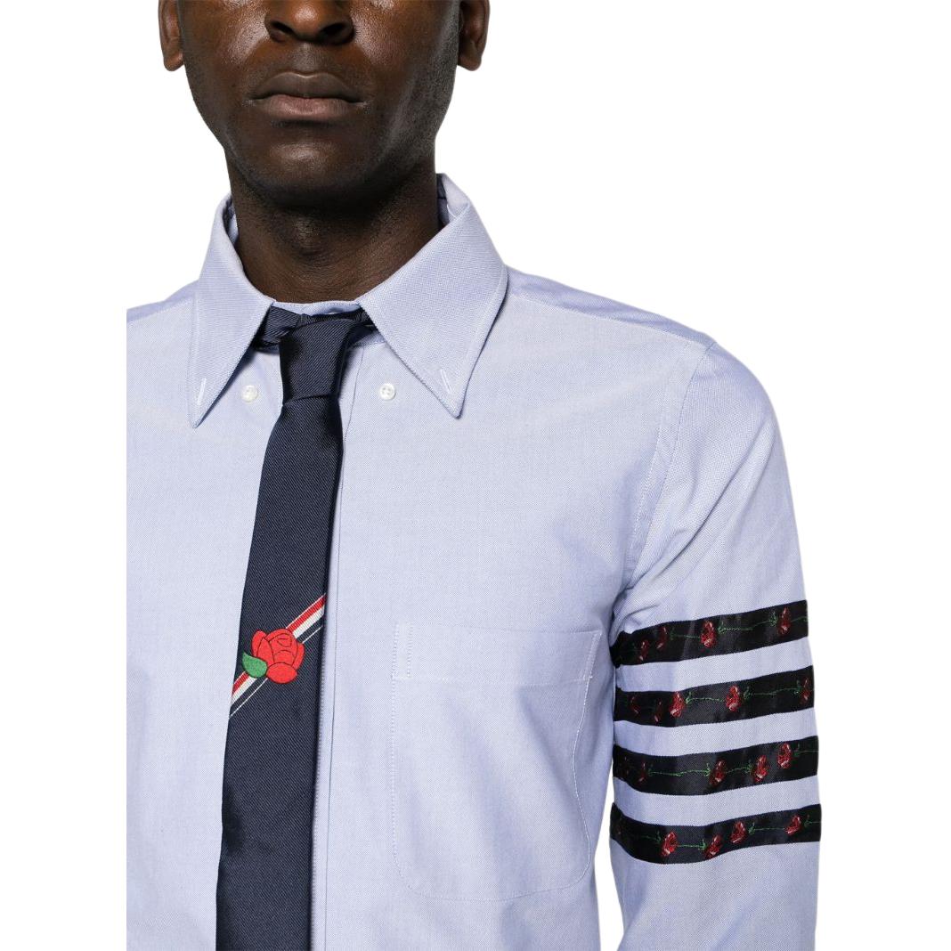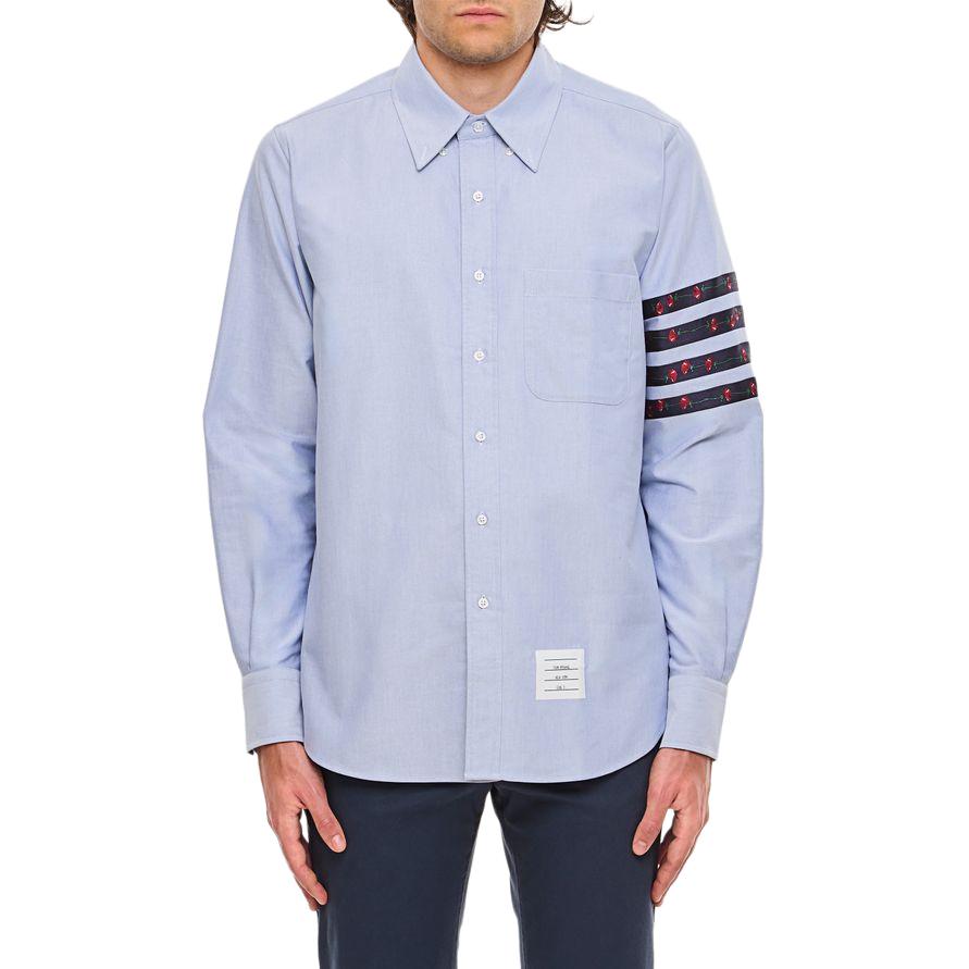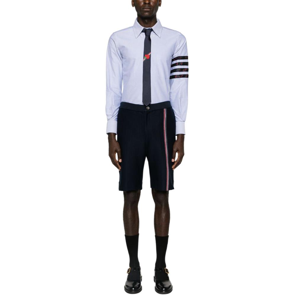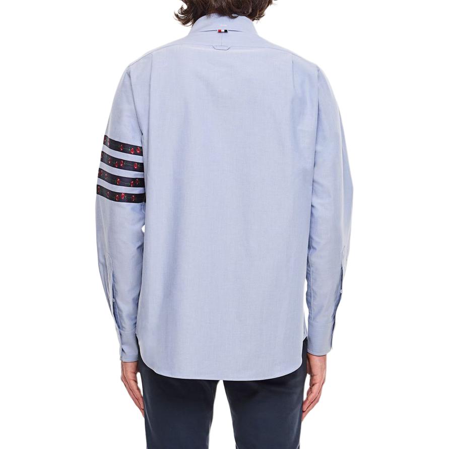 Рубашка с четырьмя полосками и фигурным подолом THOM BROWNE, синий