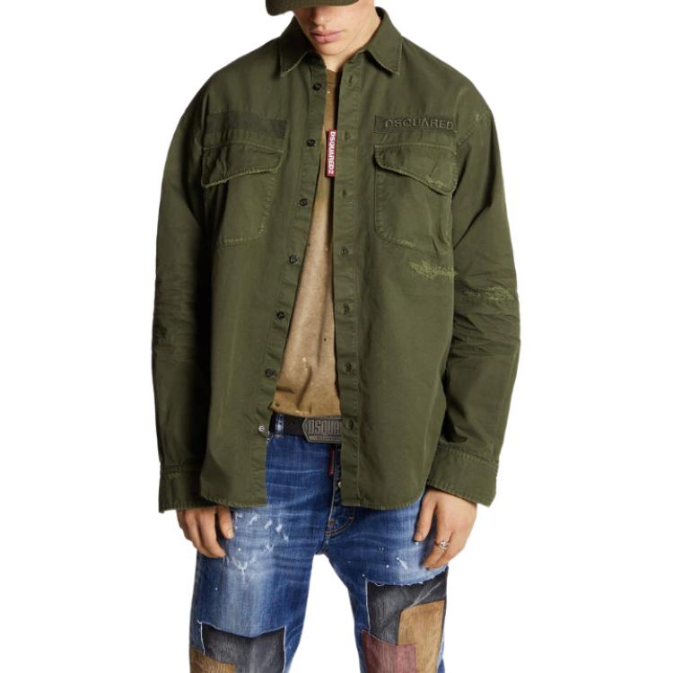 Рубашка с вышитым логотипом и фигурным подолом DSQUARED 2, зеленый