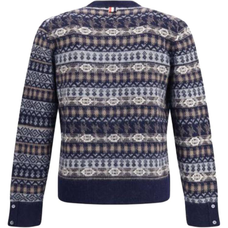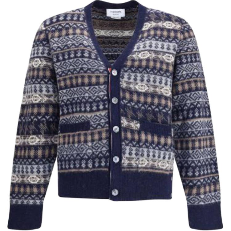Кардиган с V-образным вырезом в технике фэр-айл THOM BROWNE, синий 393 963₽