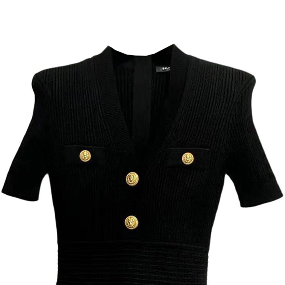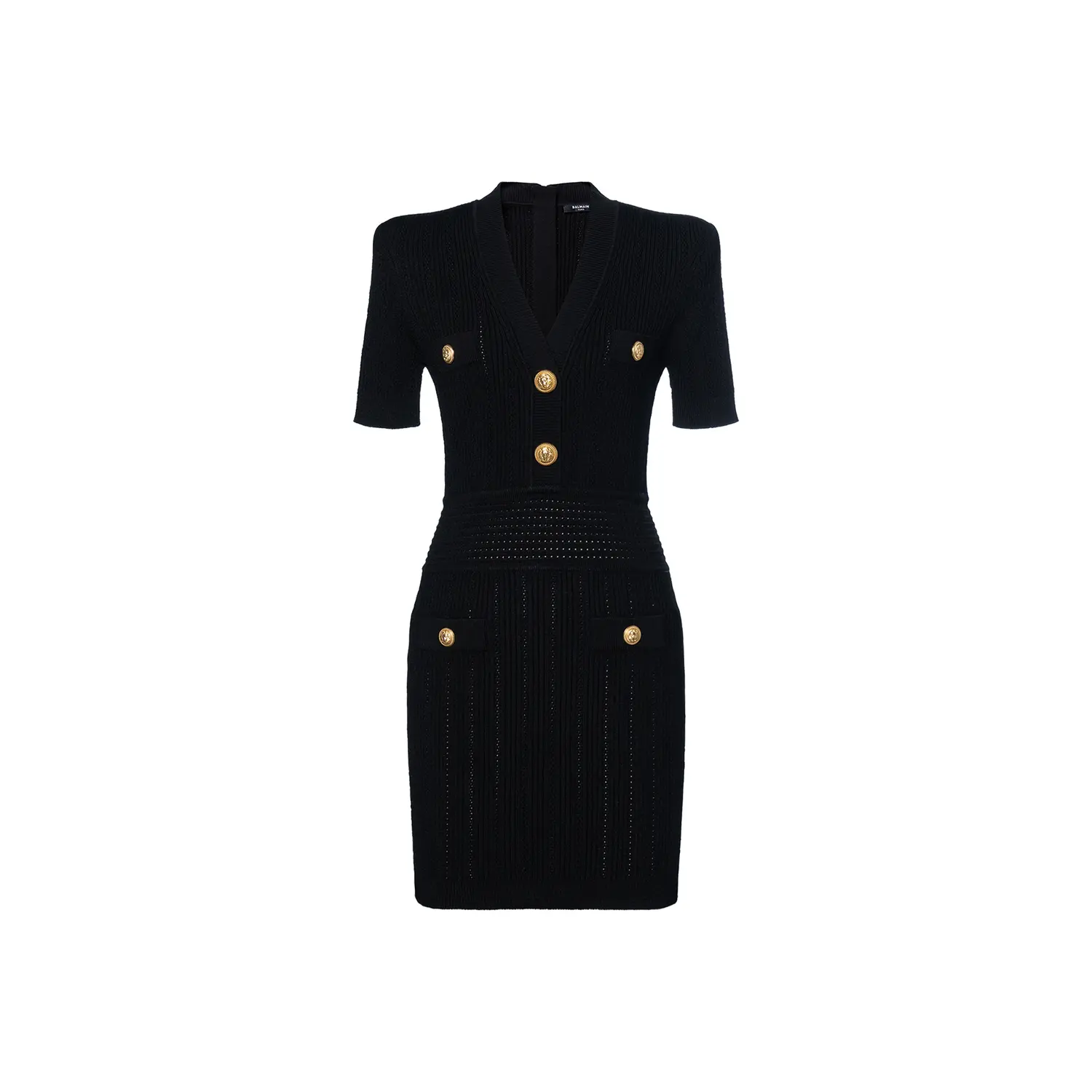Мини-платье с v-образным вырезом из плетеной сетки BALMAIN, черный 72 586₽