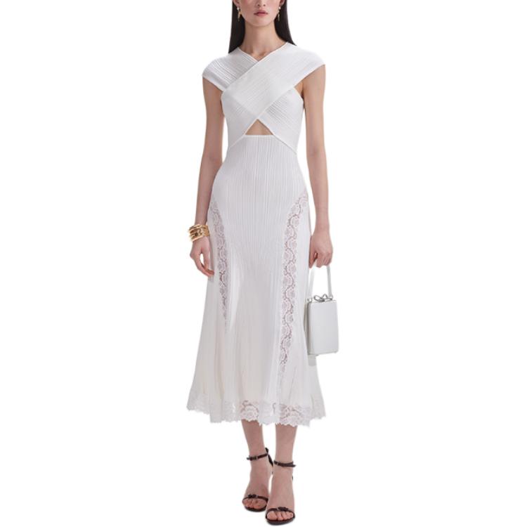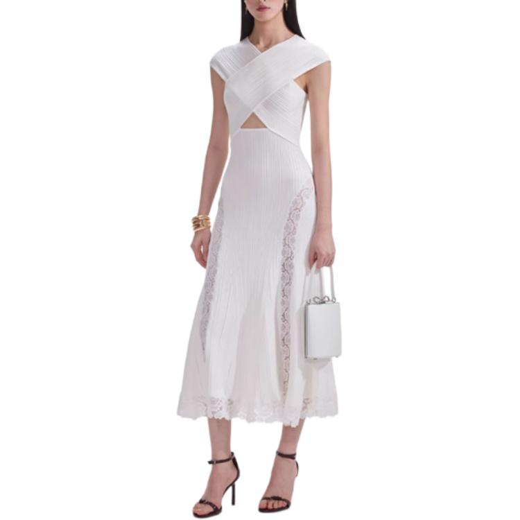 Self portrait Lace insert Knitted Midi Dress Self-portrait, белый