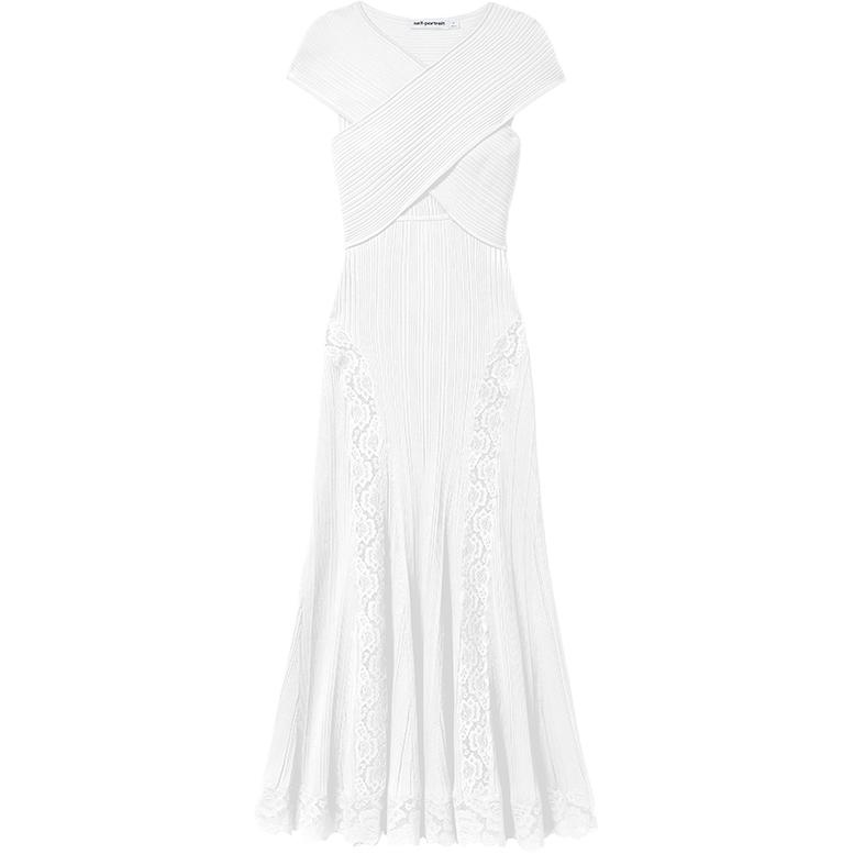 Self portrait Lace insert Knitted Midi Dress Self-portrait, белый 68 320₽