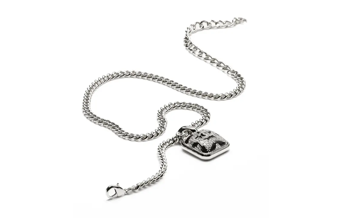 CHANEL Metal, Resin, Rhinestone, Crystal Necklaces Women's Silver