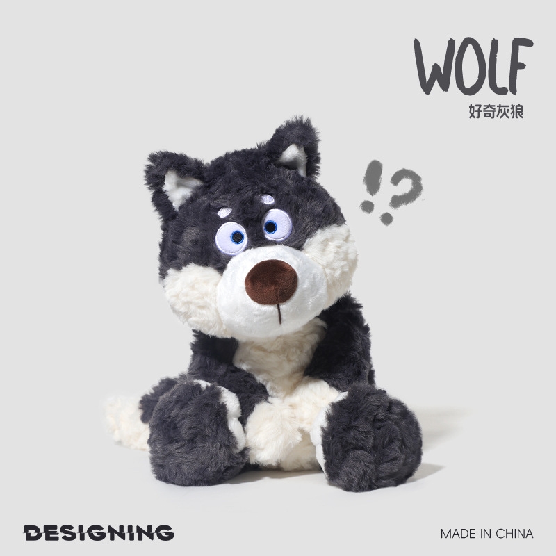 Плюшевая игрушка Cute Curious Wolf Gray Dolls высота 40см Brangdy