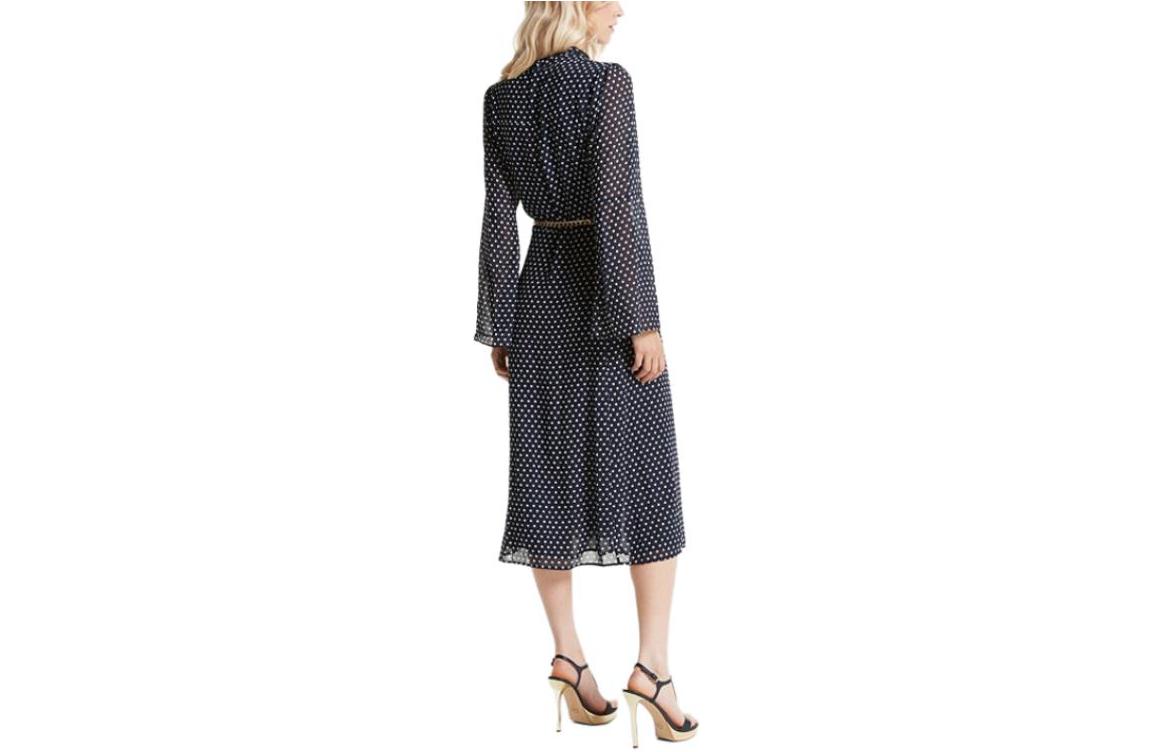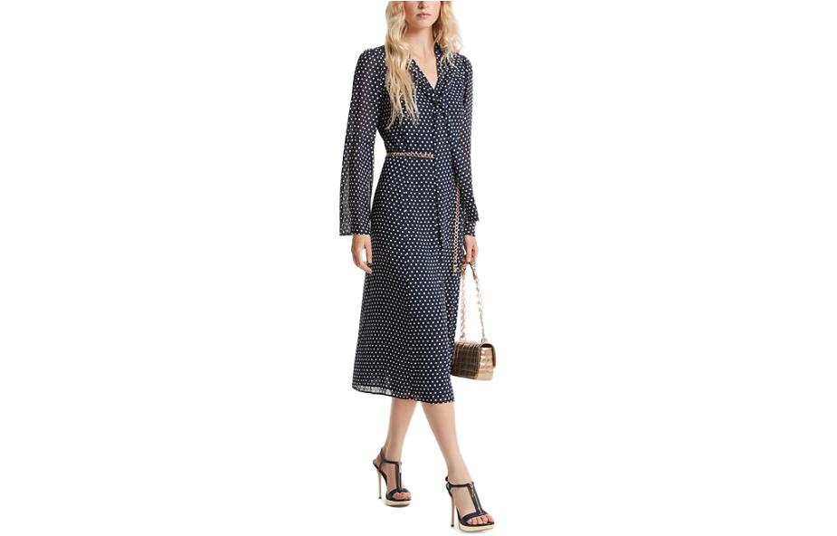 Платье миди из жоржета с галстуком в горошек MICHAEL KORS, черный