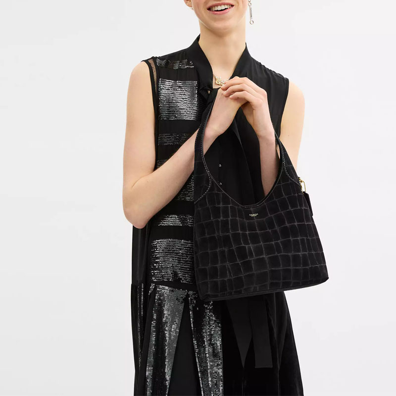 COACH Бруклинская замшевая сумка через плечо Medium Women's Black