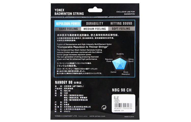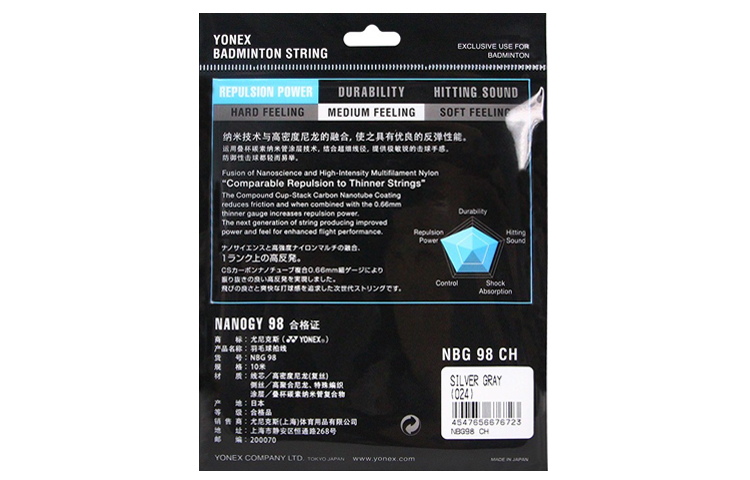 Высокоэластичная, прочная струна для бадминтона YONEX NBG98CH имеет диаметр 0,66 мм для четкого ощущения и высокой отскока для легкой защиты.
