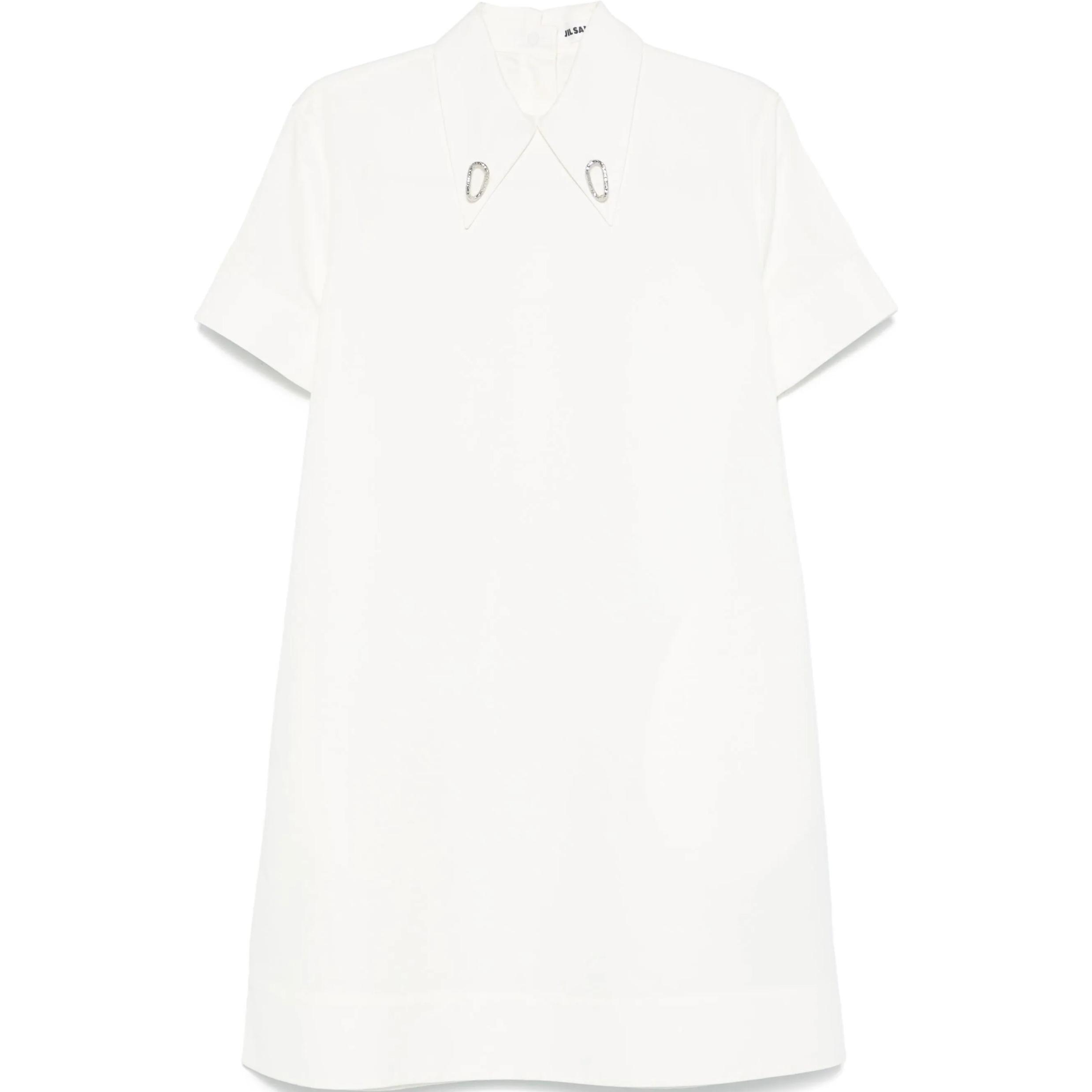 Короткое платье с коротким рукавом и воротником JIL SANDER, белый
