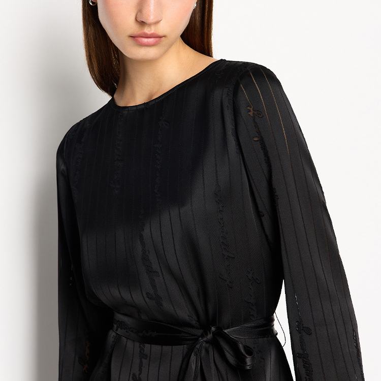Сатиновое миди-платье с вышитым логотипом ARMANI EXCHANGE, черный