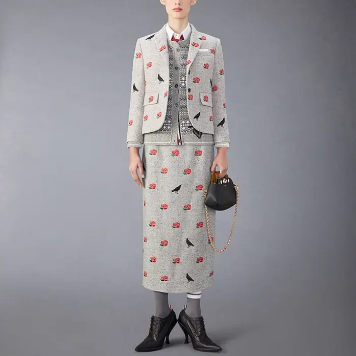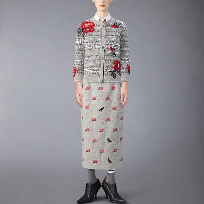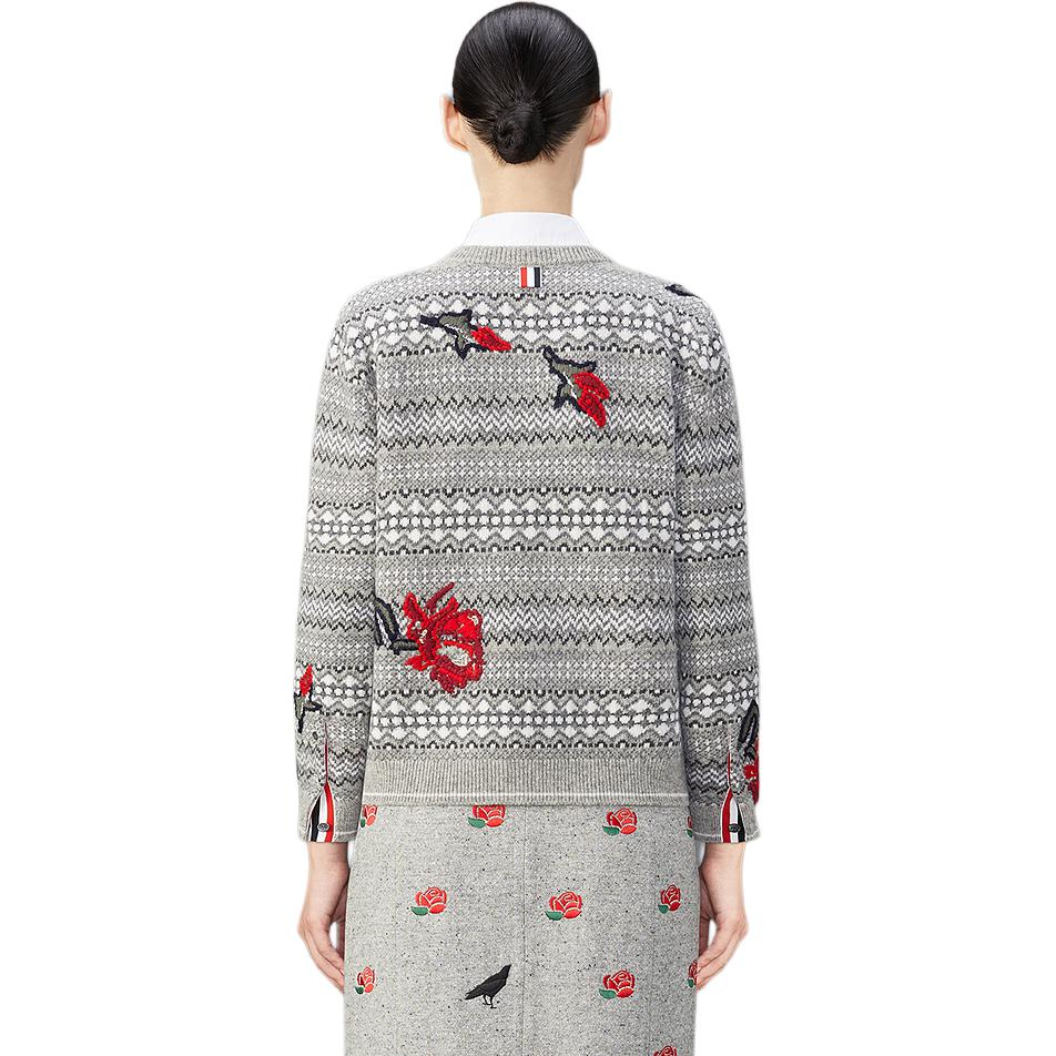 Вышитый цветочный узор кардиган Wool THOM BROWNE, Same Color Gray