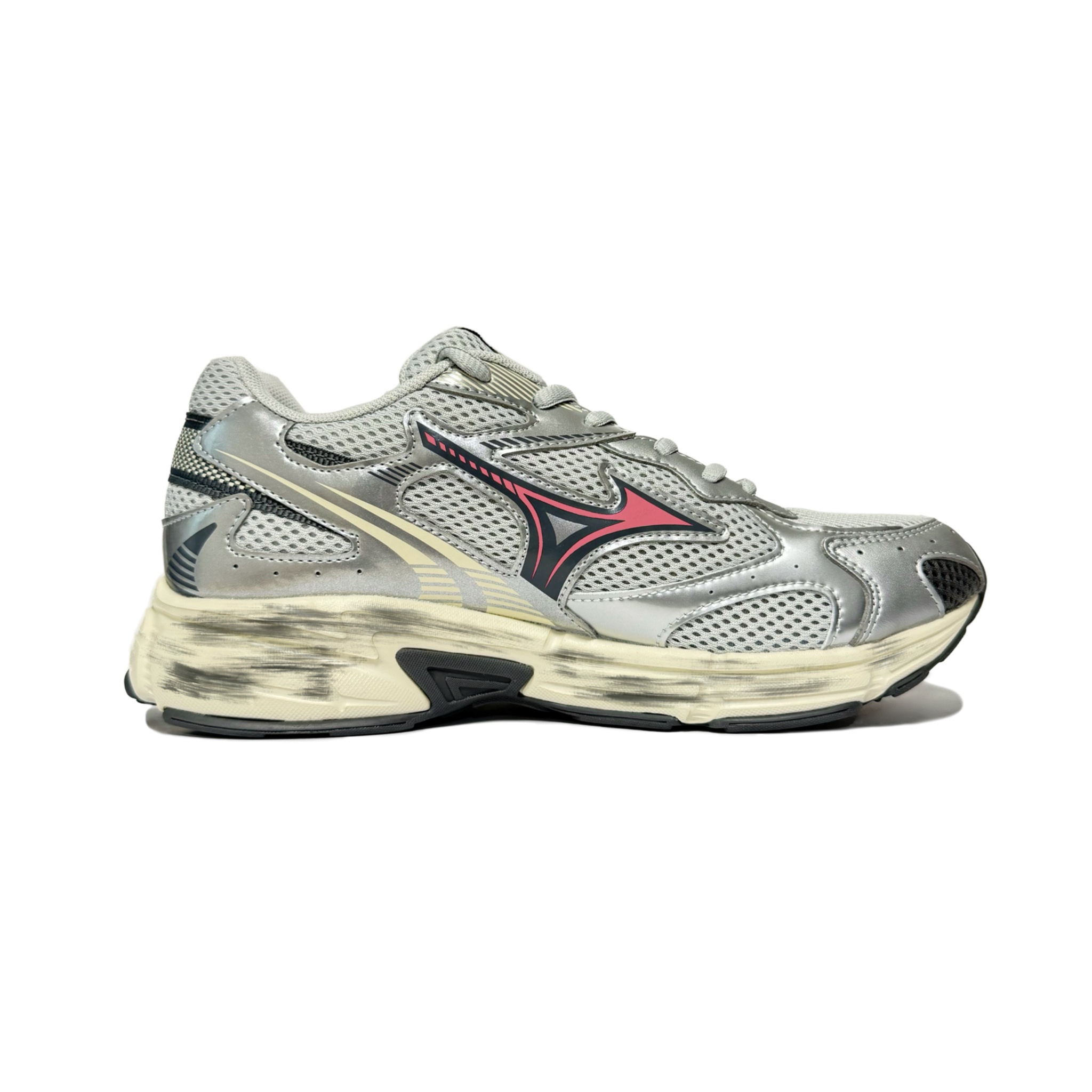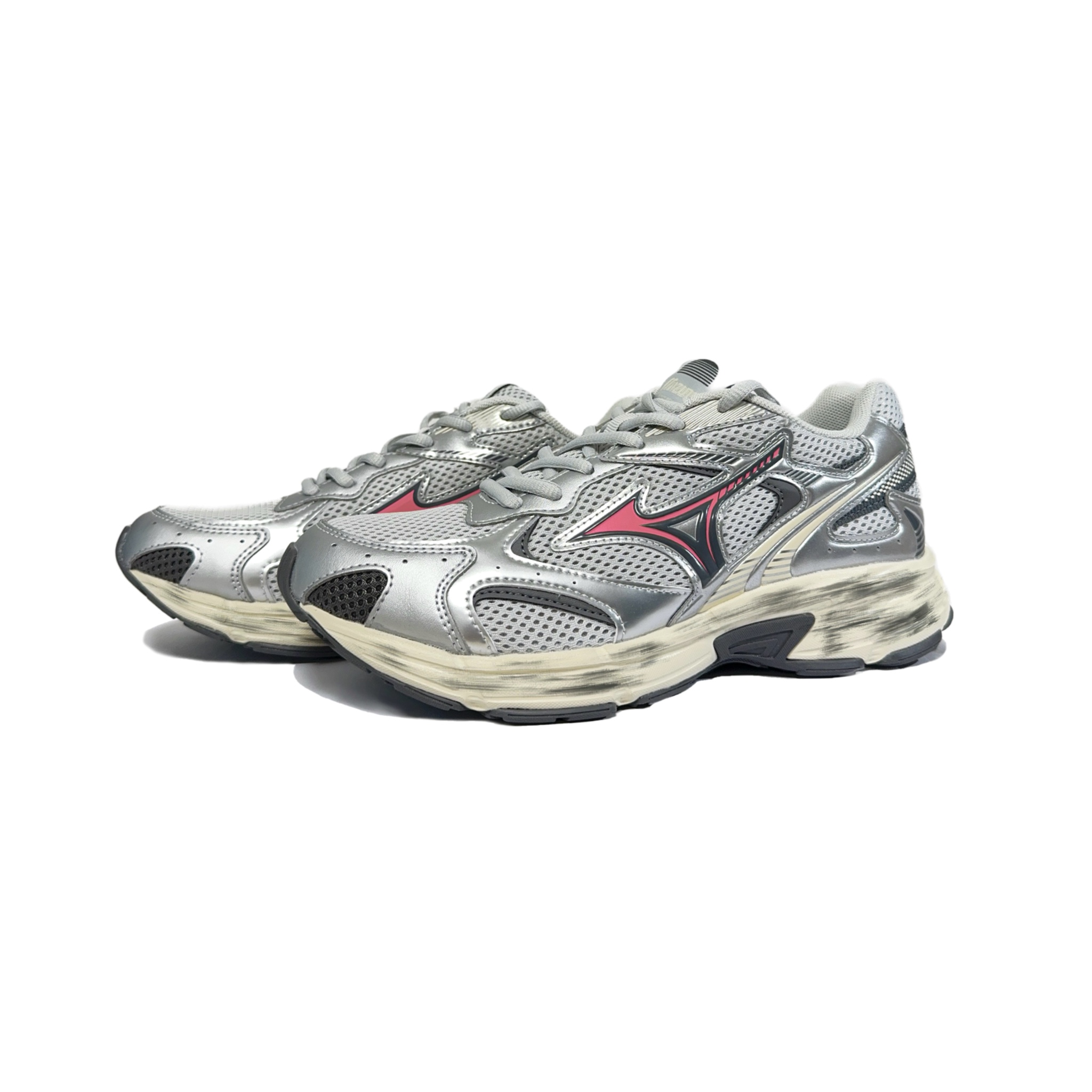 Эти кроссовки изготовлены на основе оригинальной модели Mizuno Speed 2K - удобных, универсальных, амортизирующих, прочных, дышащих и отзывчивых кроссовок с низким верхом в стиле унисекс серебристо-серого цвета. В дизайне присутствуют серебристые и розовые акценты, придающие кроссовкам милый и стильный вид.
