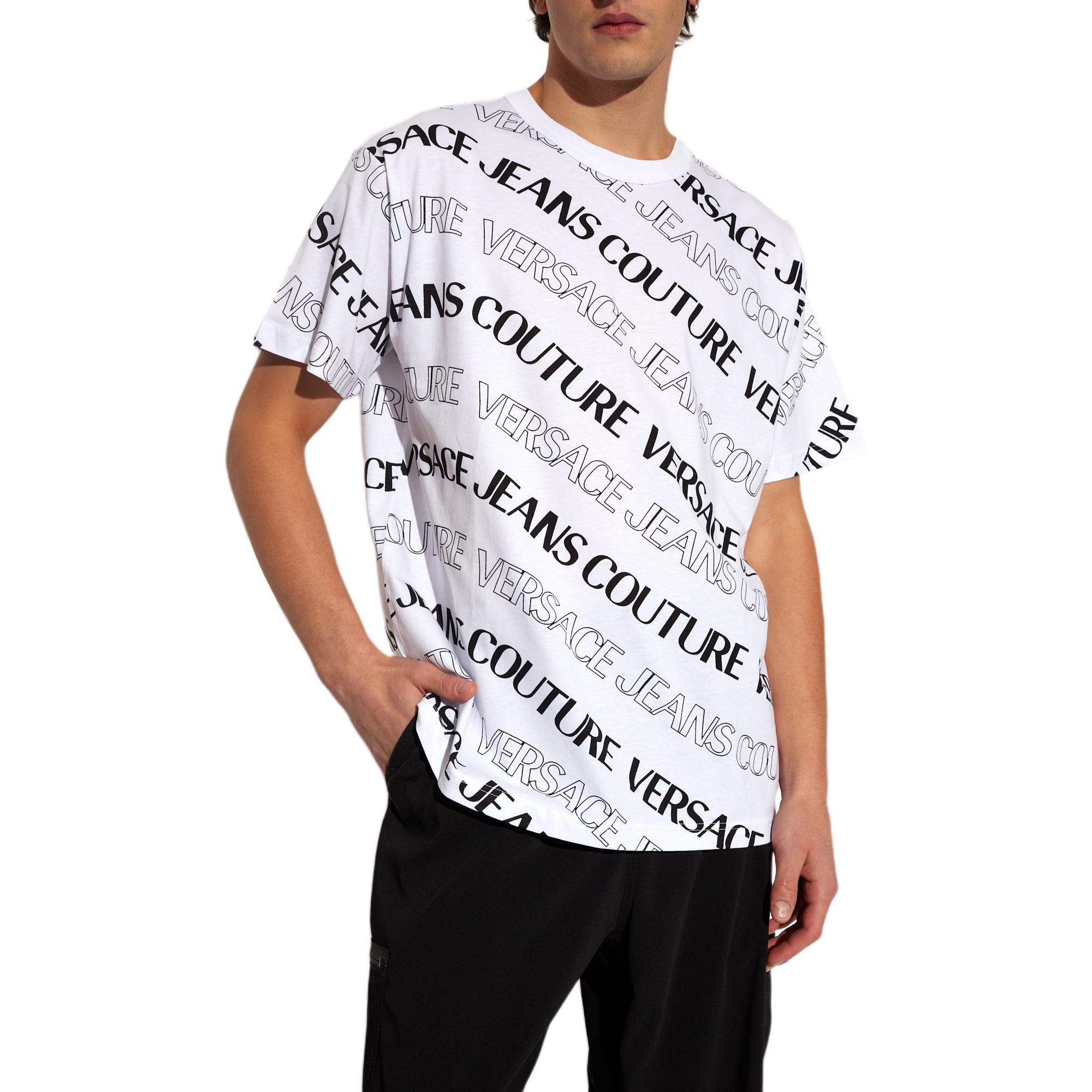 Футболка с принтом логотипа Couture Allover VERSACE JEANS, белый