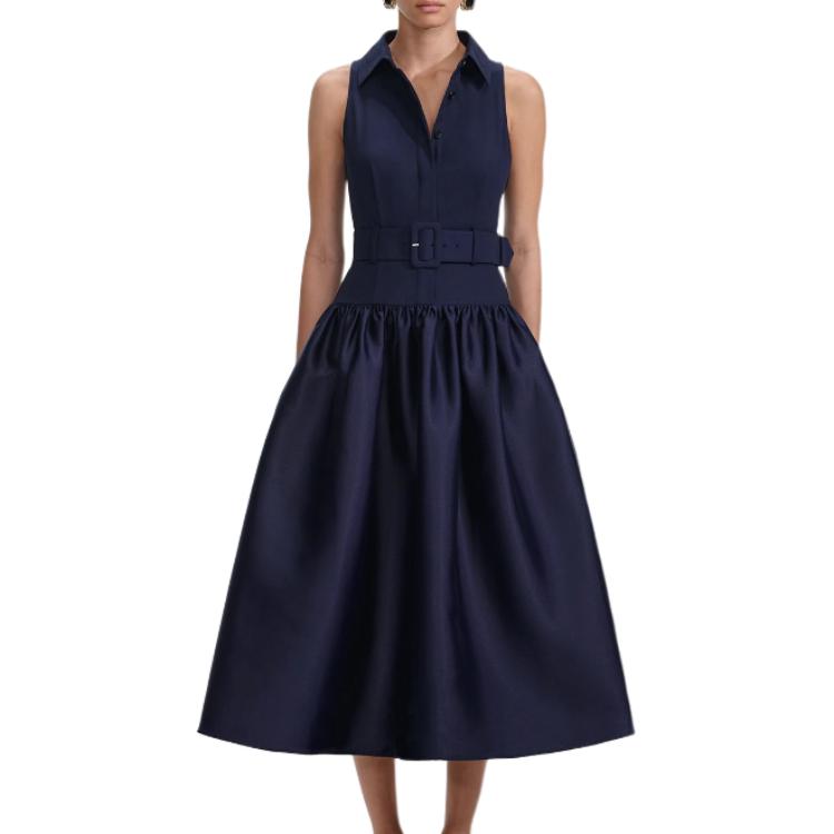 Платье миди Self portrait с поясом из твила Self-portrait, синий 55 205₽