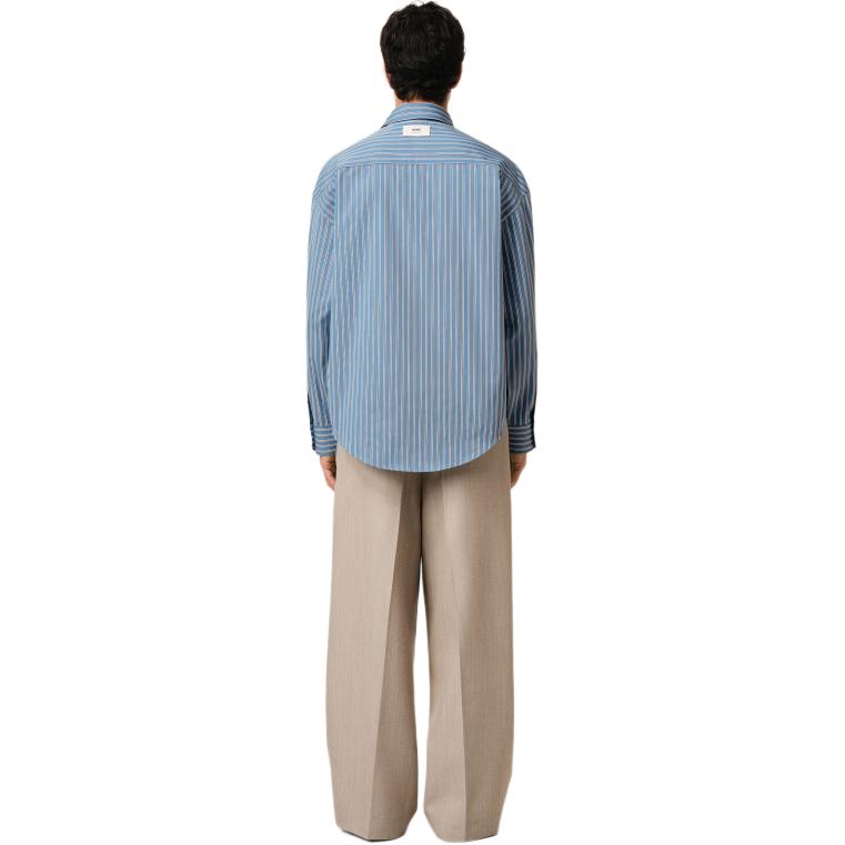 Рубашка в полоску Ami Paris с нашивкой-логотипом AMIPARIS, синий