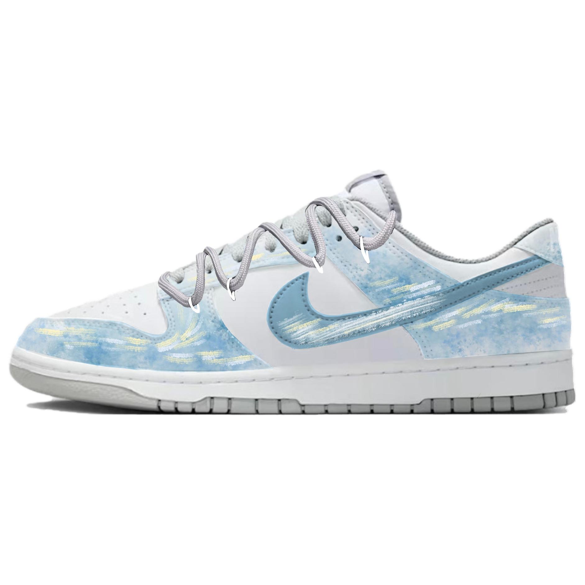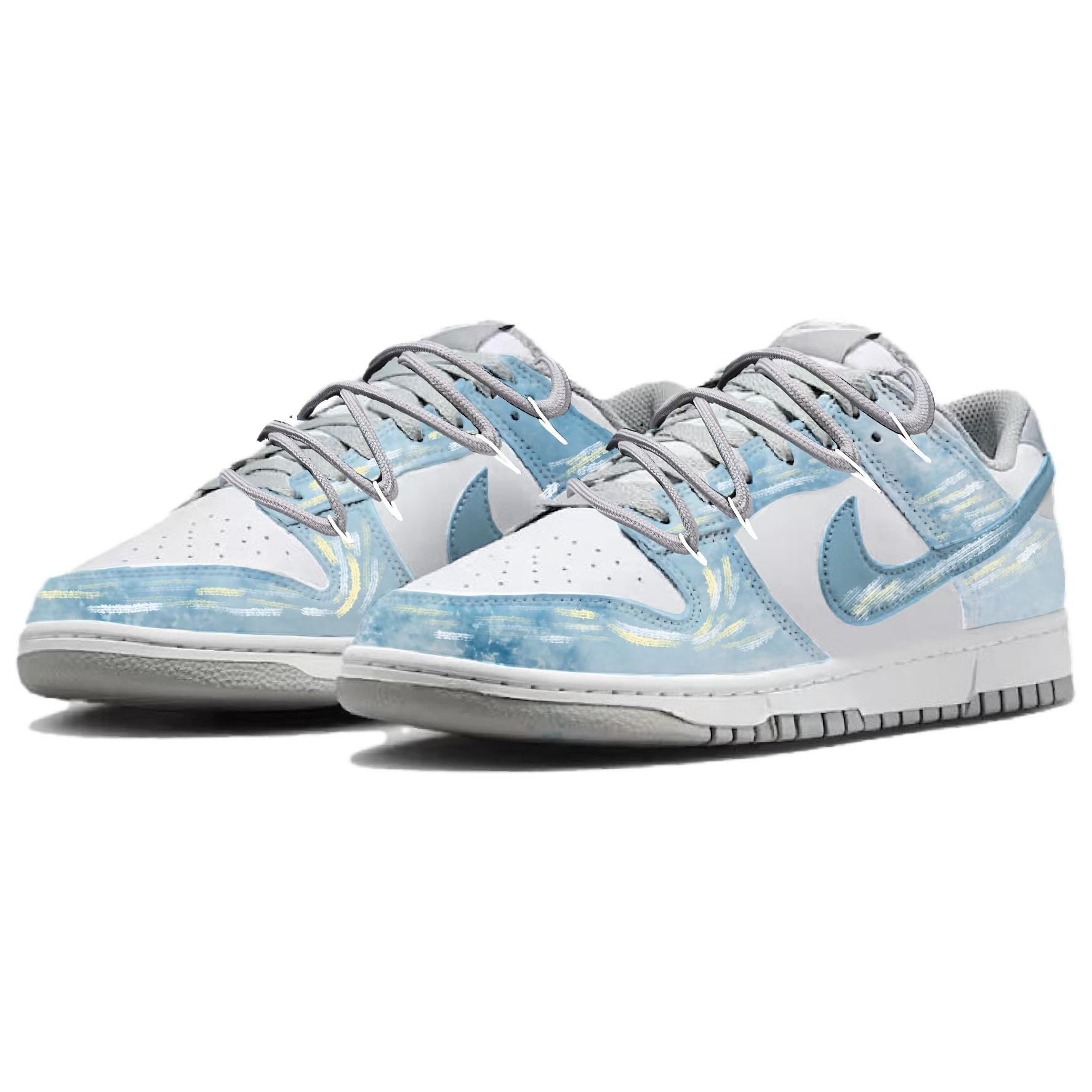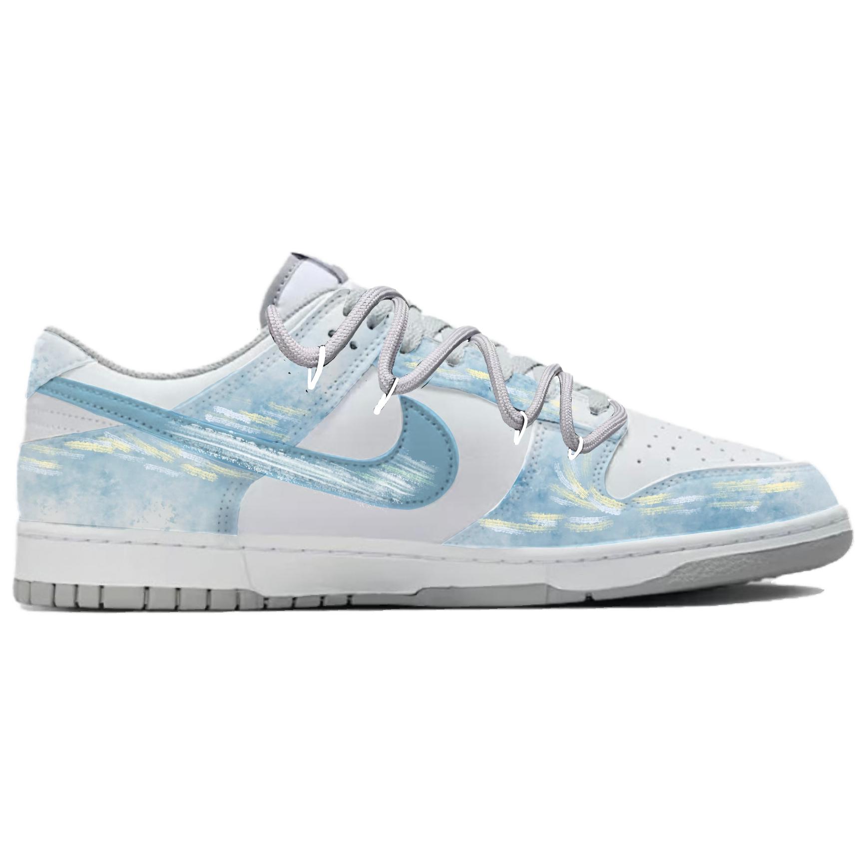 Эти кроссовки созданы на основе оригинальной модели Nike Dunk. Вся модель выполнена в синей цветовой гамме с небольшими графическими элементами, вдохновленными повседневной жизнью.