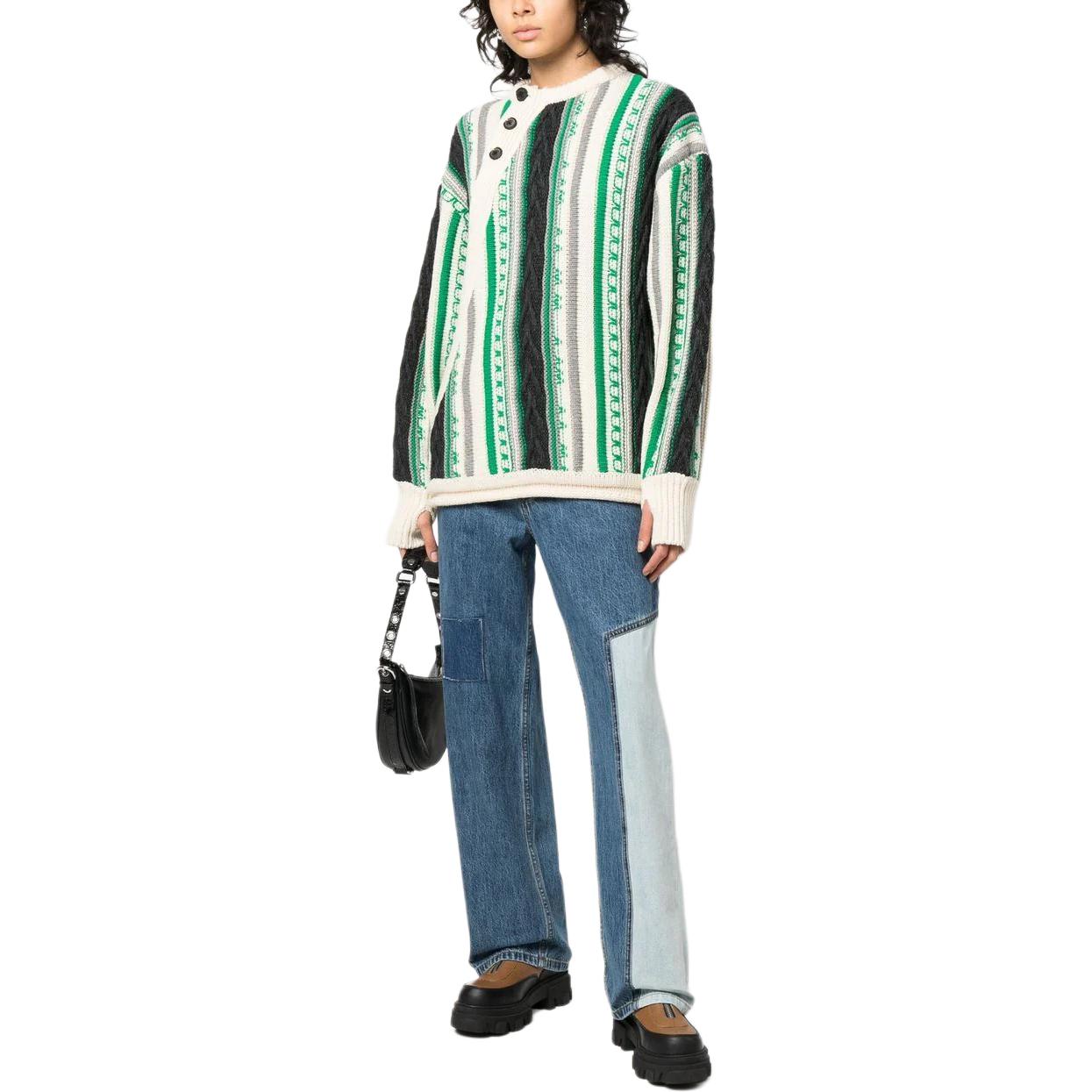 Фрема полосатый вязаный джемпер на пуговицах ADER ERROR, зеленый