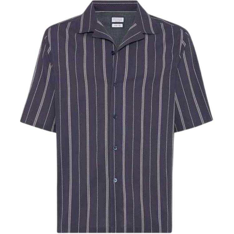 Полосатая рубашка с короткими рукавами Brunello Cucinelli, синий 56 980₽