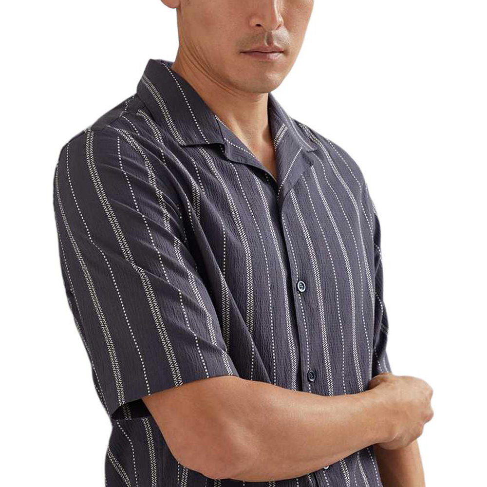 Полосатая рубашка с короткими рукавами Brunello Cucinelli, синий