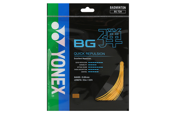 Высокоэластичная струна для бадминтона YONEX BGTCR начального уровня, диаметр 0,66 мм, произведена в Китае. Прочная и экономичная для тренировок и игр.