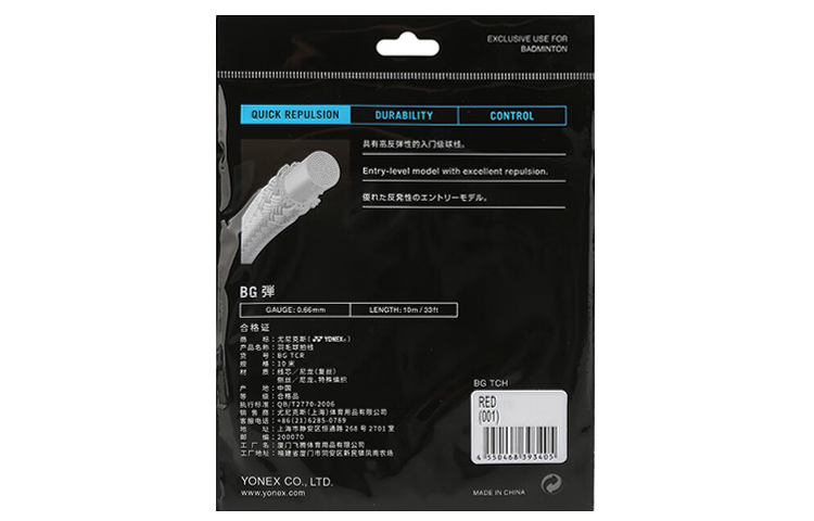 Высокоэластичная струна для бадминтона YONEX BGTCR начального уровня, диаметр 0,66 мм, произведена в Китае. Прочная и экономичная для тренировок и игр.