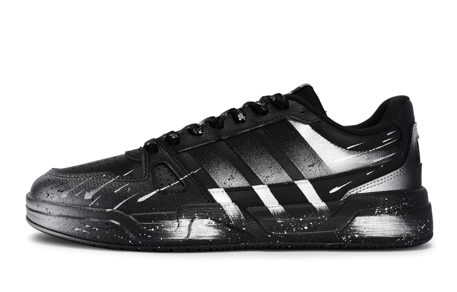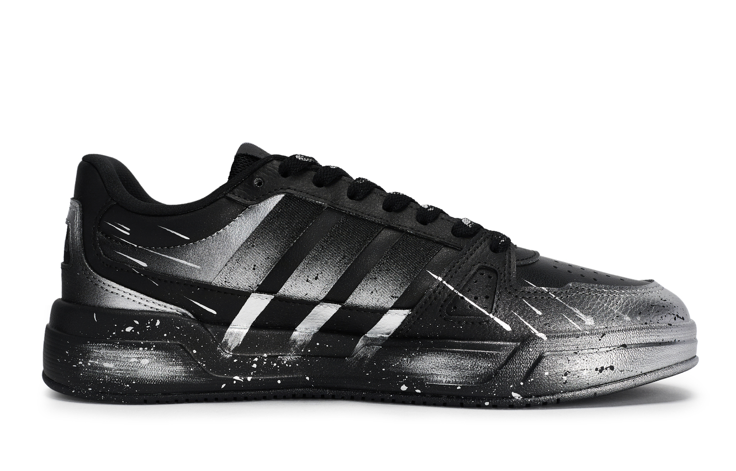 Эти кроссовки изготовлены на основе оригинальных кроссовок adidas LITE BALLER - удобных, универсальных, нескользящих и прочных низких кроссовок унисекс с тонкой подошвой в черном цвете. На изображении представлен реальный товар; цвет модели может незначительно отличаться. Все кроссовки изготавливаются вручную, и каждая пара может иметь незначительные отличия. В комплект входит специальная коробка для обуви.