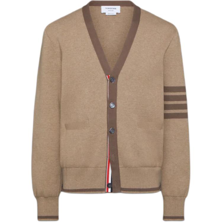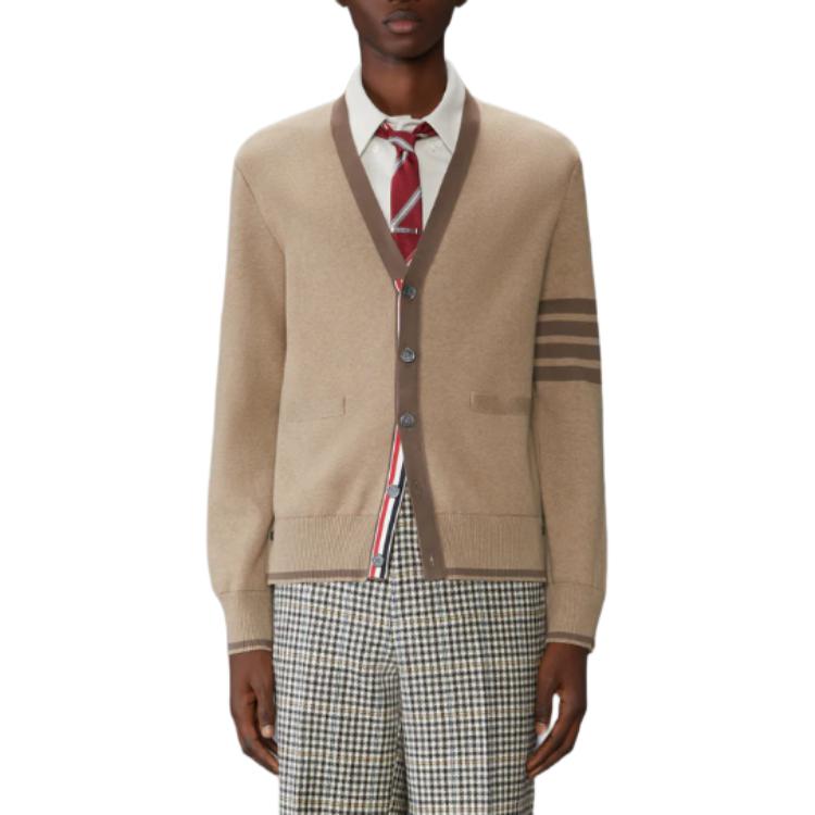 Том E 4-полосный кардиган с длинными рукавами THOM BROWNE, хаки
