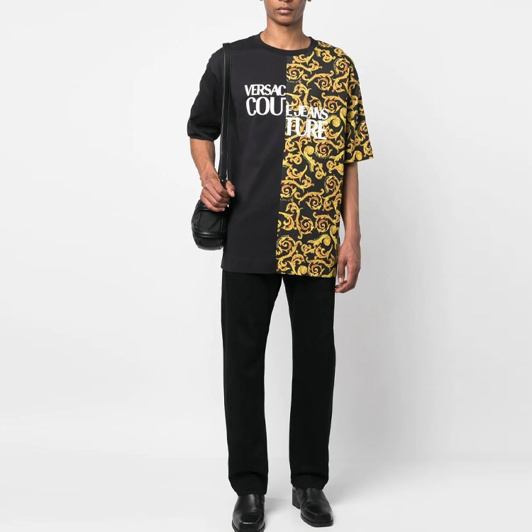 Футболка Barocco print с панелями VERSACE JEANS COUTURE, черный