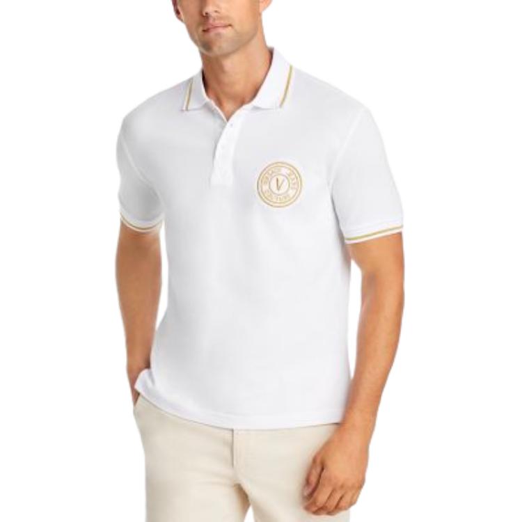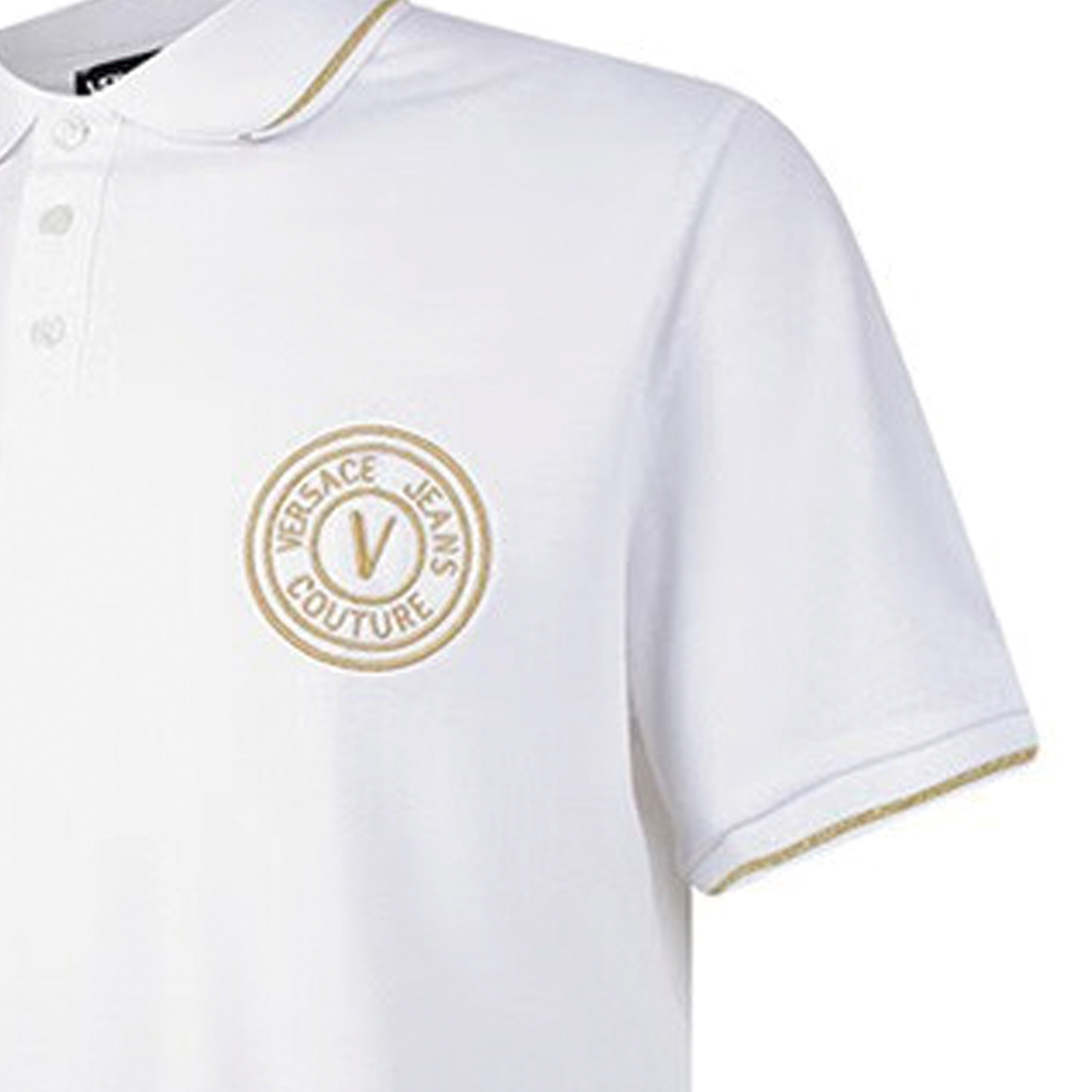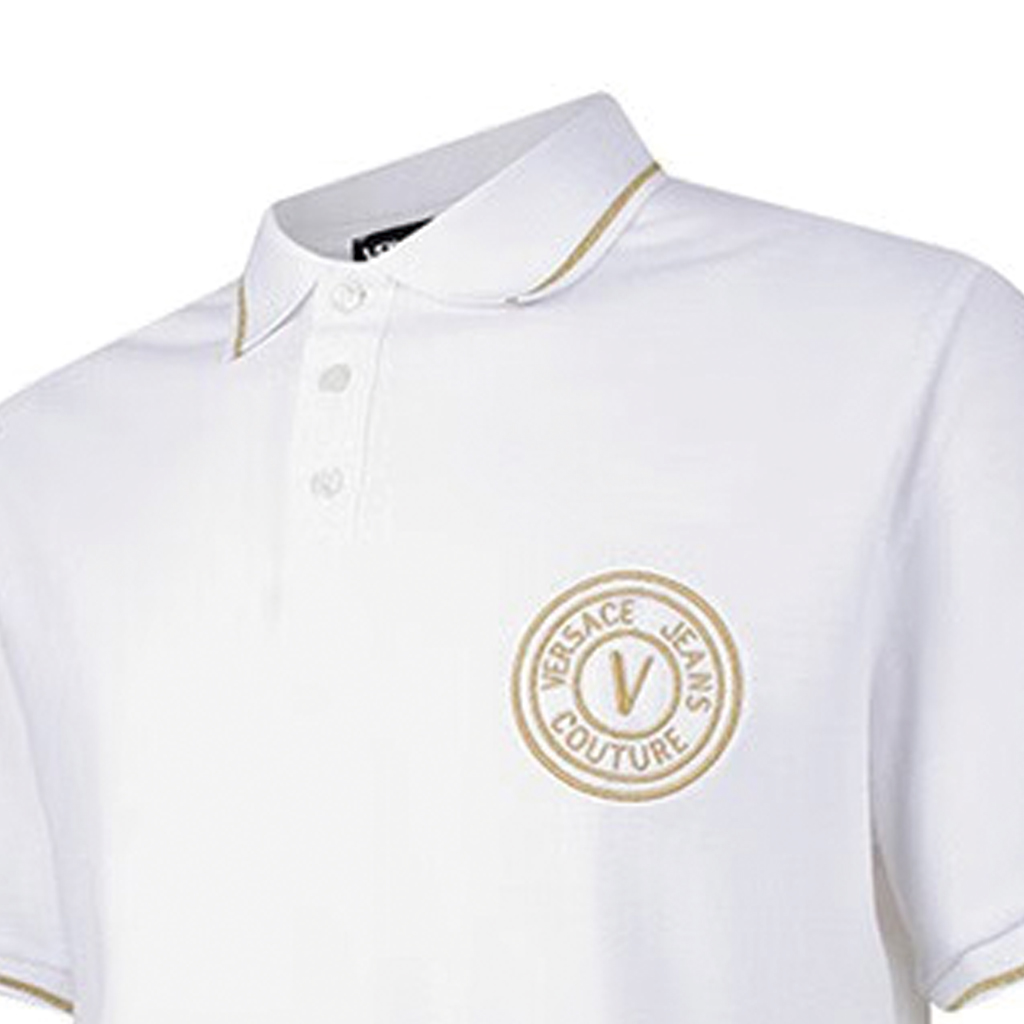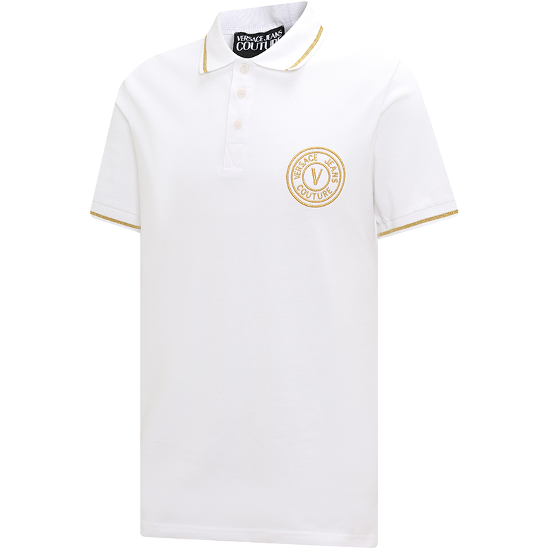 Хлопковая поло с вышитым логотипом VERSACE JEANS COUTURE, белый