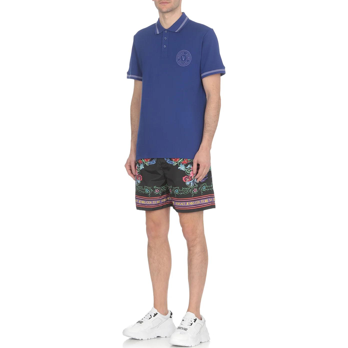 Хлопковая поло с вышитым логотипом VERSACE JEANS COUTURE, синий 17 109₽