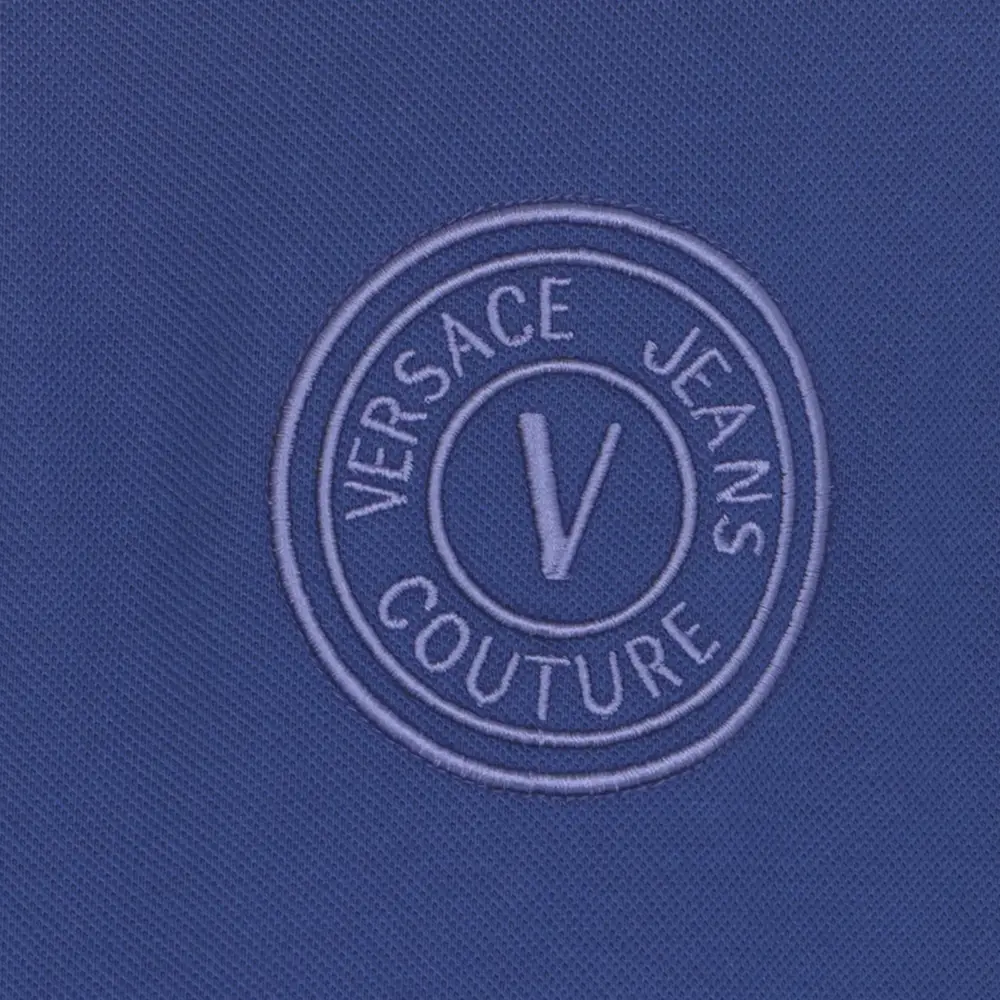 Хлопковая поло с вышитым логотипом VERSACE JEANS COUTURE, синий