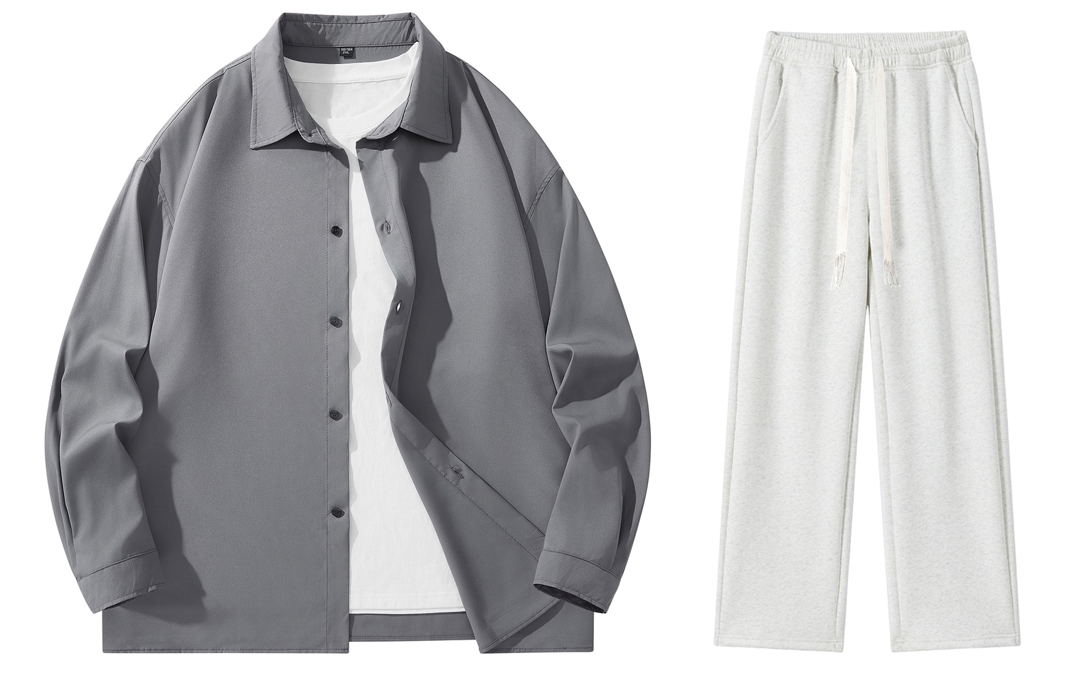 Комплект: Комплект одежды (темно-серая рубашка + повседневные брюки цвета белого меланжа)