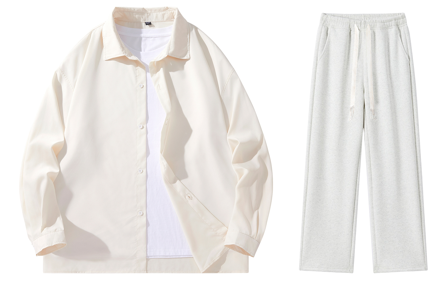 Комплект: комплекты одежды (абрикосовая рубашка + повседневные брюки цвета «белый меланж»)
