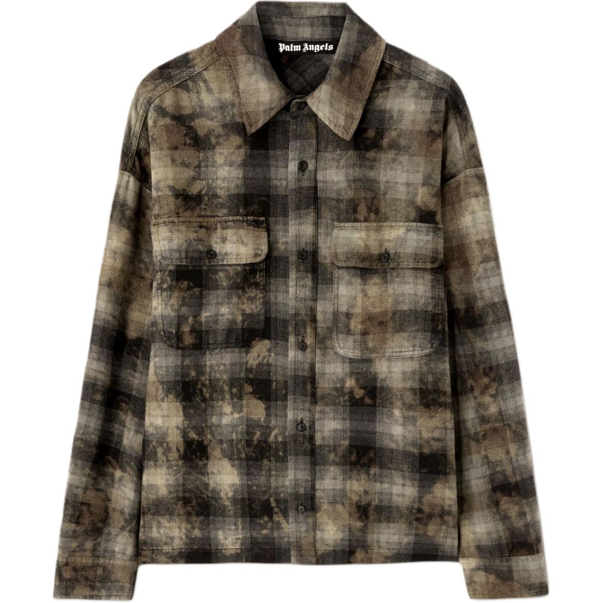 Рубашка с логотипом и клетчатым принтом PALM ANGELS, коричневый