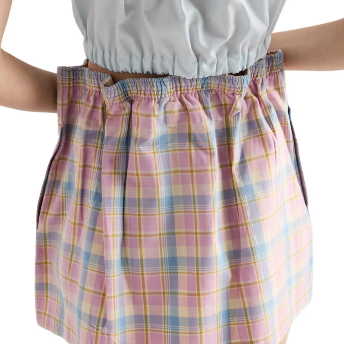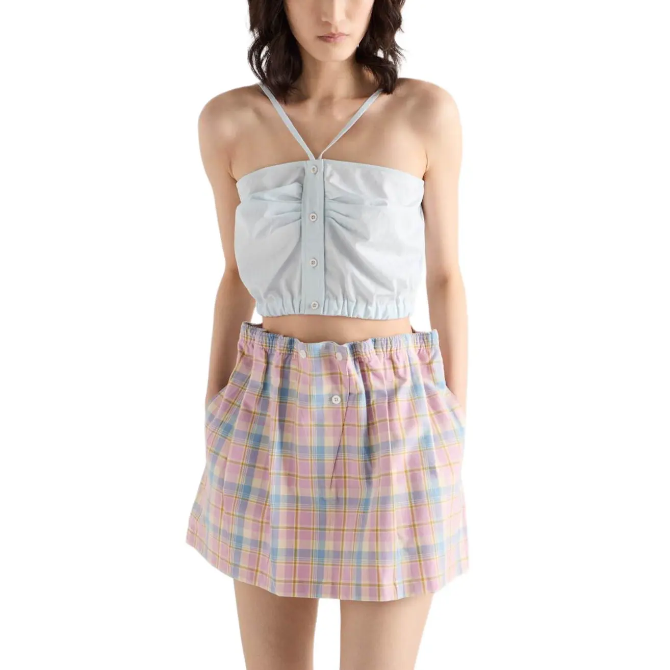 Мини-юбка с клетчатым принтом и сборкой на талии PRADA, розовый 47 044₽