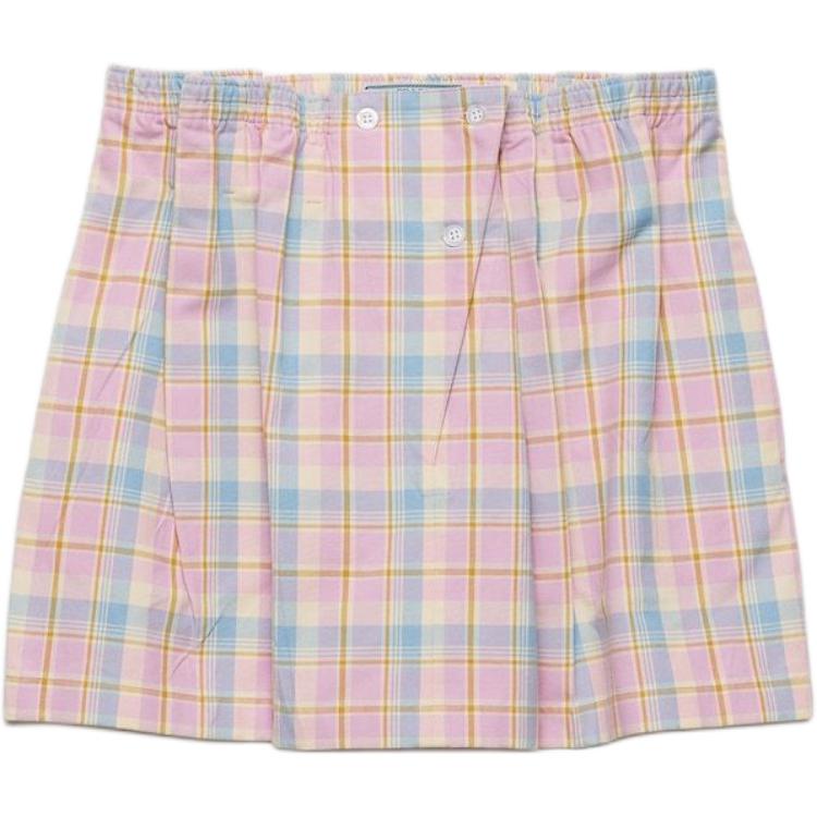 Мини-юбка с клетчатым принтом и сборкой на талии PRADA, розовый