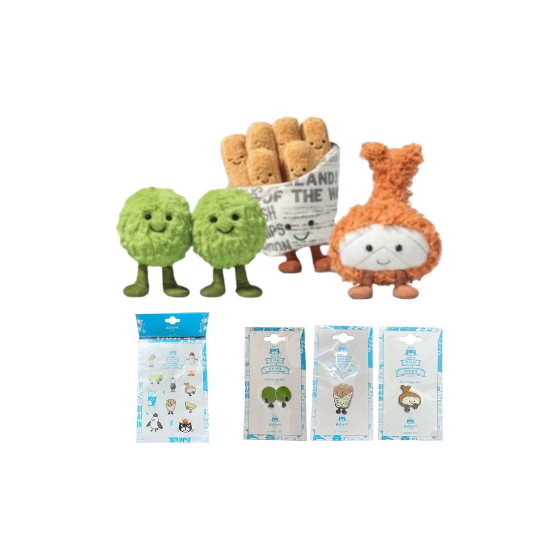 Набор из трех плюшевых кукол fish and chips with peas JELLYCAT