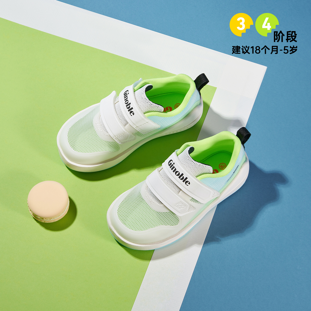 GINOBLE Дышащие детские ботиночки White/Laser Blue/Green Light