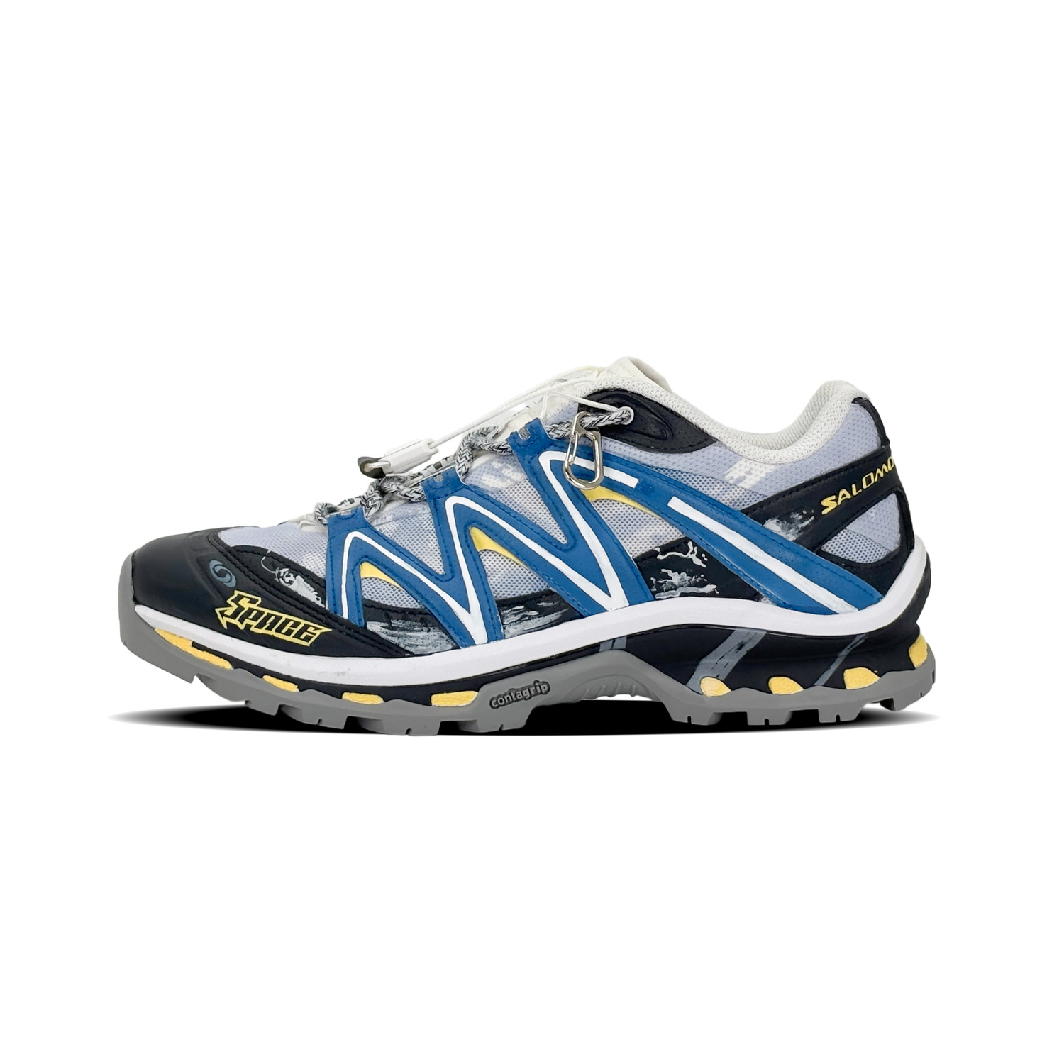 Эти кастомные кроссовки основаны на оригинальной модели Salomon. Дизайн выполнен в коричнево-синей цветовой гамме и украшен ручной росписью.