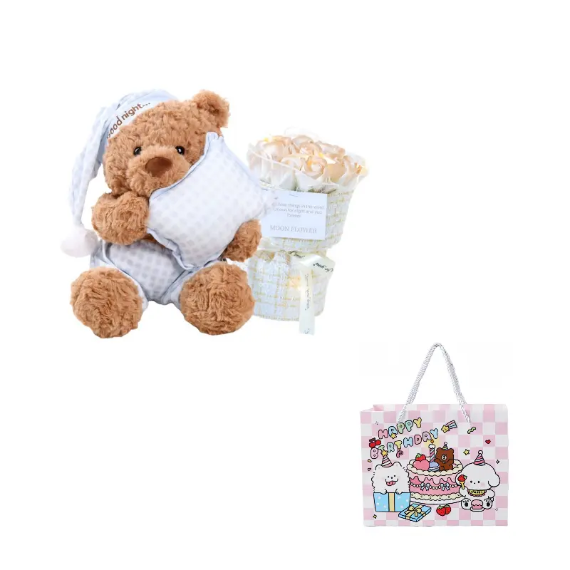 Название продукта: [Нет текста] Синяя клетчатая пижама «Медведь» + Букет капучино