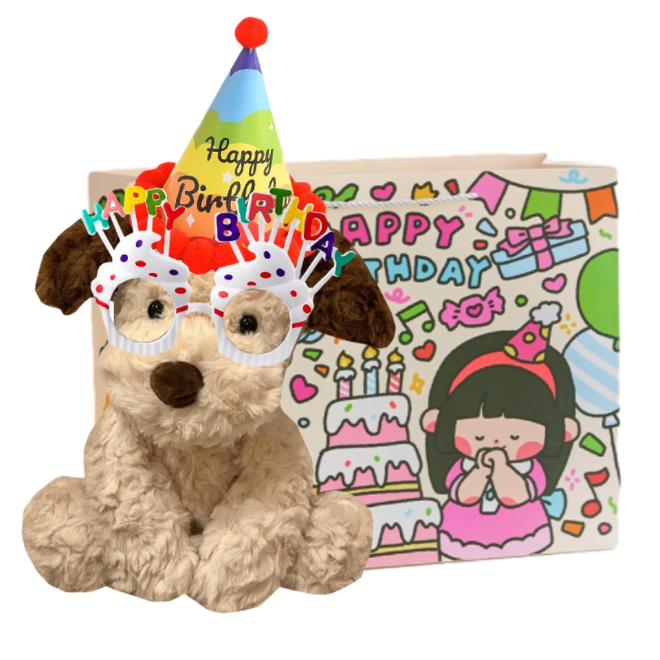 Название продукта: Щенок Джека + Розовая праздничная шапочка + Бокал для дня рождения