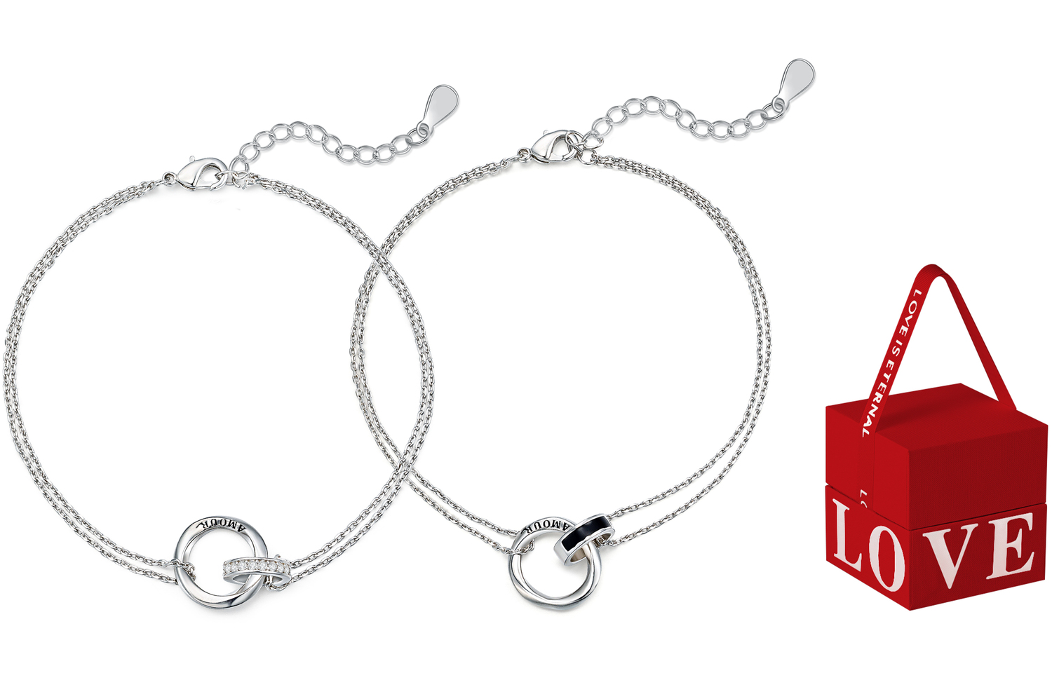 Браслеты с блестящими стразами Unisex TEEX, серебристый/черный