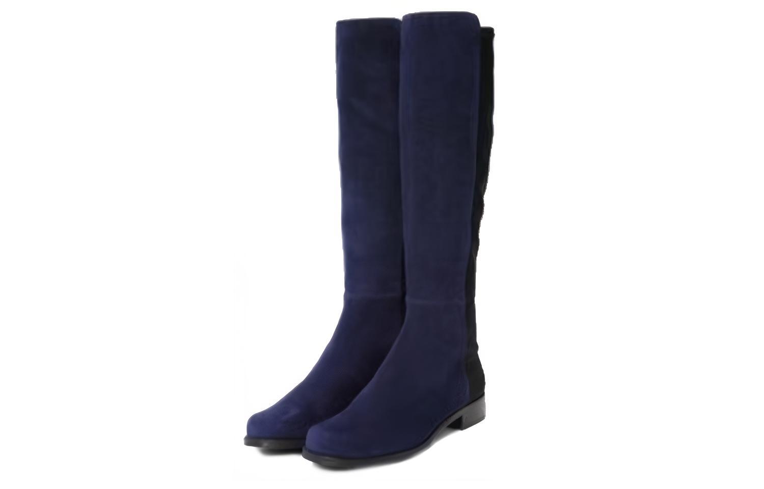 Женские замшевые высокие сапоги Stuart Weitzman Half, цвет: темно-синий, застежка: застежка-липучка, резиновая подошва.