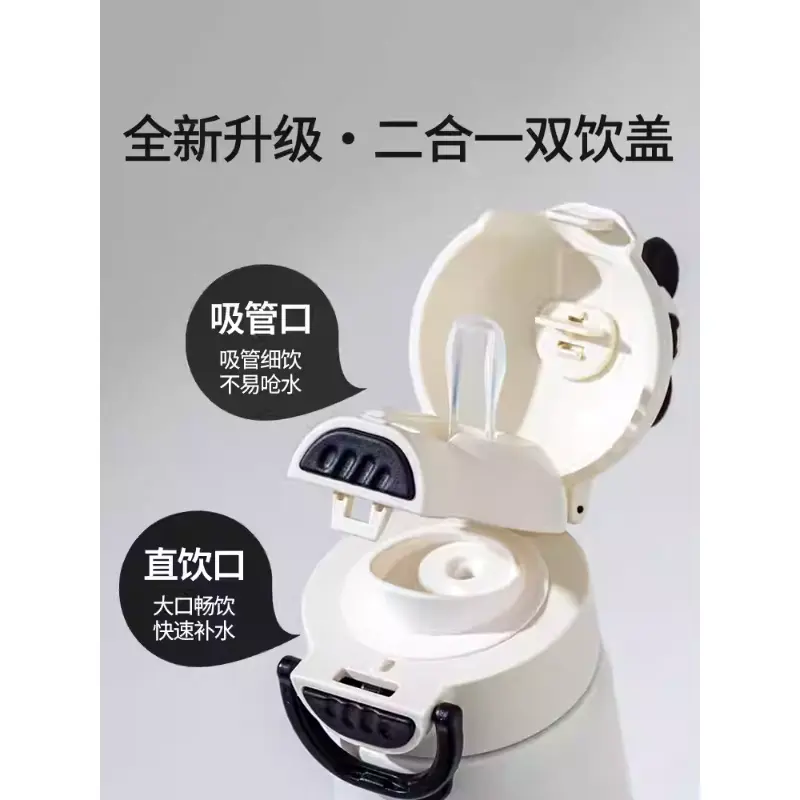 Это стильный и детально проработанный студенческий стакан для двух напитков. Внутренняя часть изготовлена из нержавеющей стали 316, одна крышка имеет двойной носик для питья, сверху изображена милая фигурка, а красивый кожаный чехол защищает от падений и удобен для переноски.