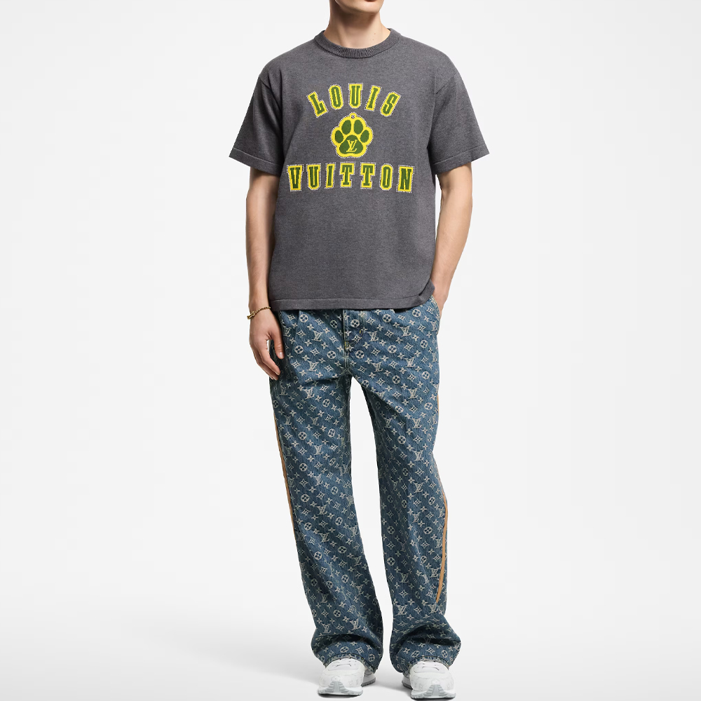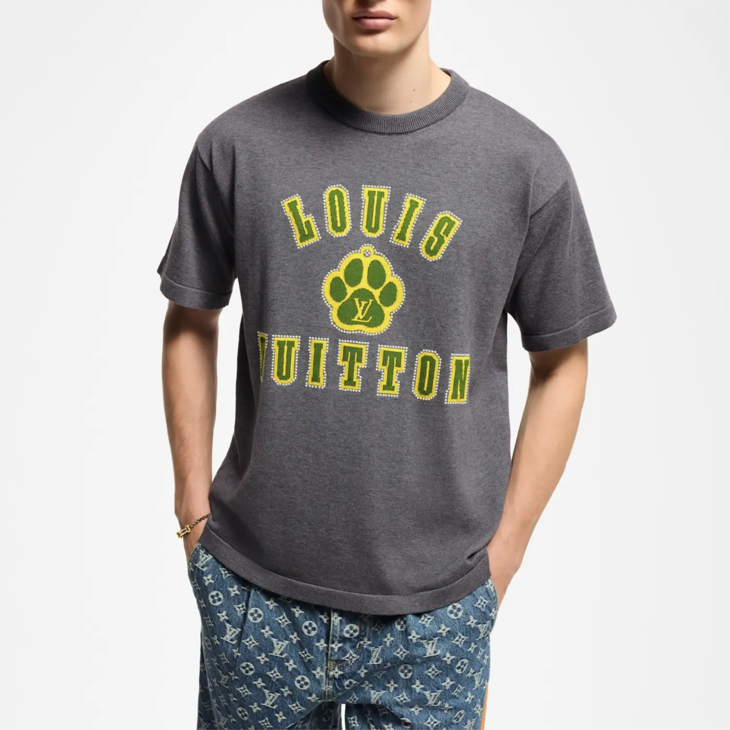 Embellished Short-Sleeved Cotton Crewneck LOUIS VUITTON, серый 94 950₽
